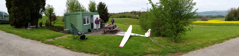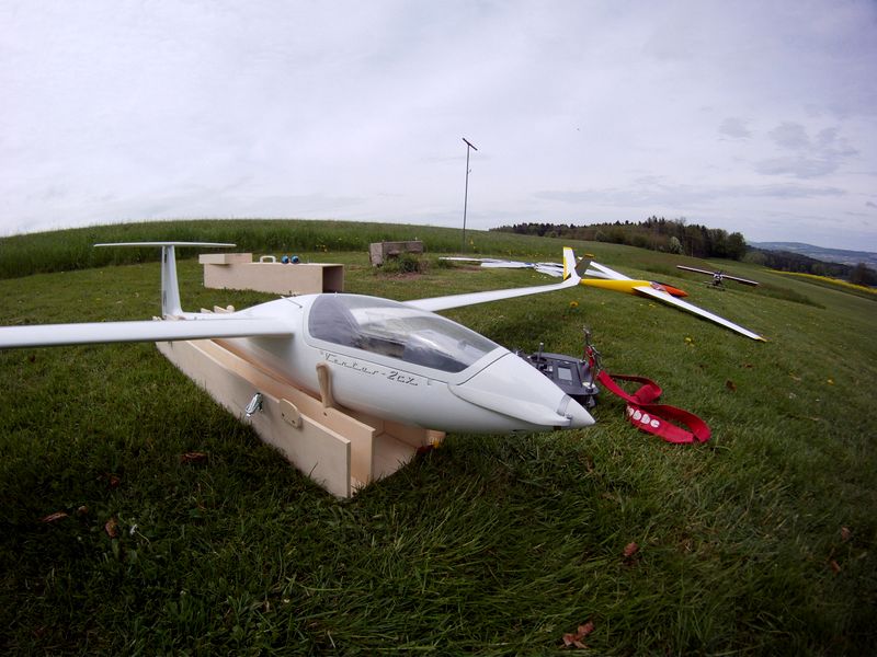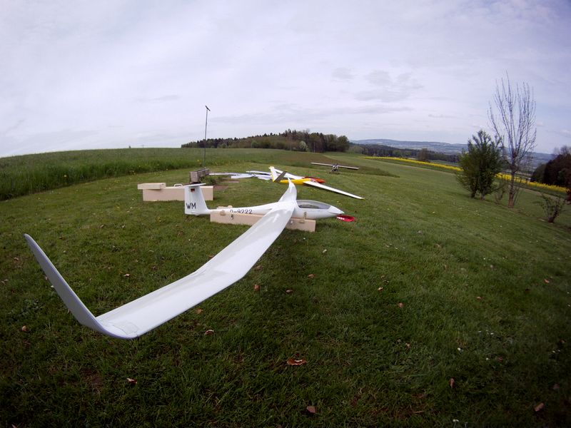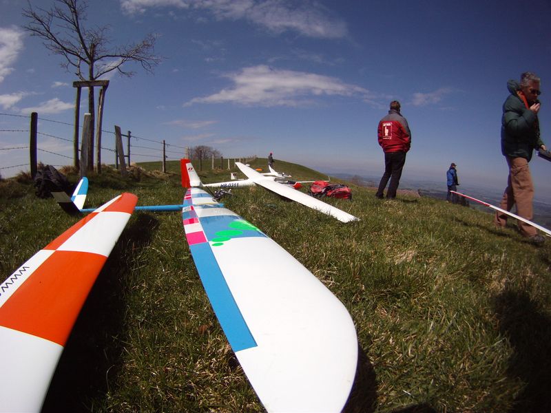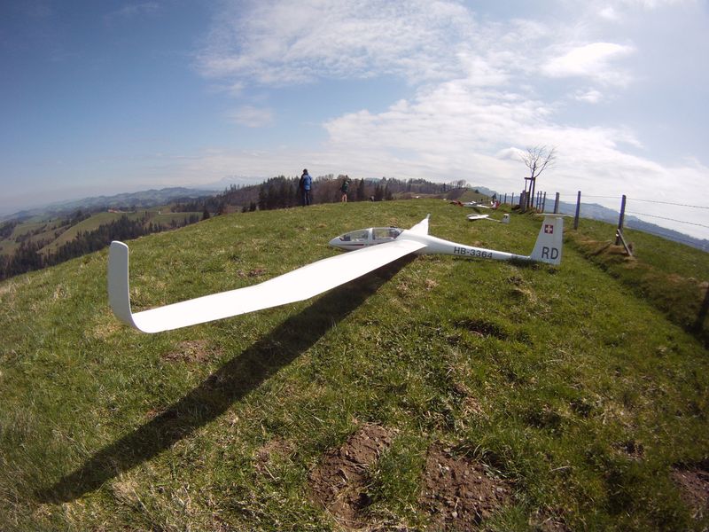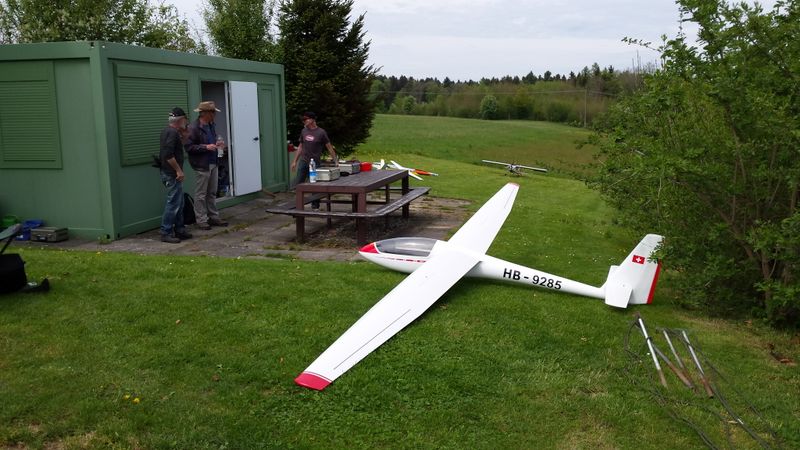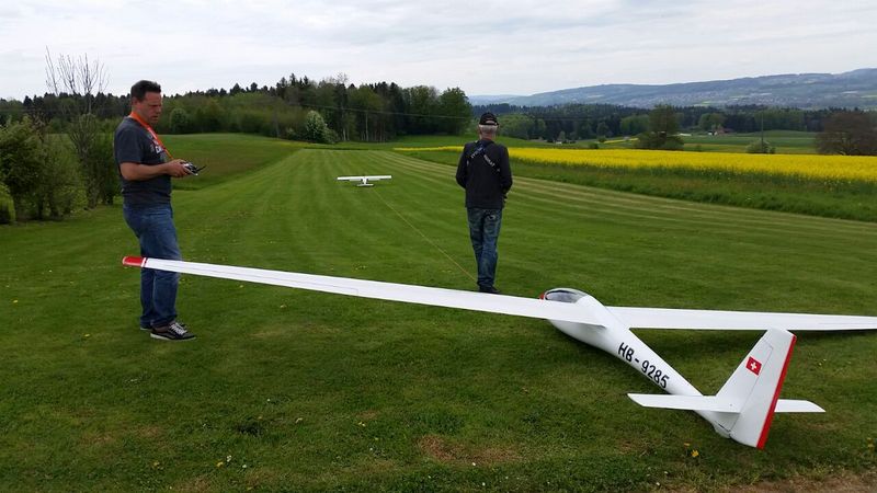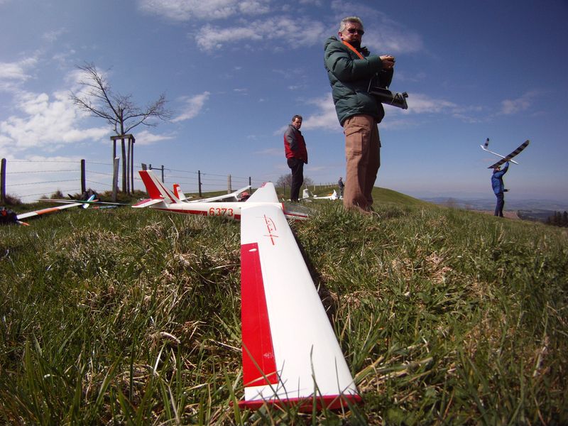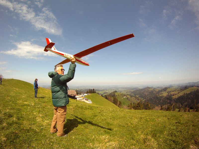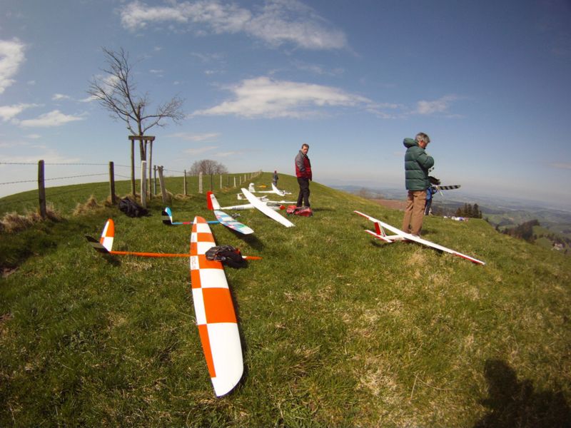 unternahmen Robi, Mario und meine Wenigkeit, Ende April. Bei schönster Bisenlage konnten wir den ganzen Nachmittag bis abends ausgiebig fliegen; Wetter, Thermik Kaffee mit Kuchen und das abendliche Menue im Restaurant, waren vorzüglich. Mario liess sich sein Modell durch mich nach oben transportieren und reiste selbst mit dem Töff an – so geht’s auch! >>Verbindung von Synergien.