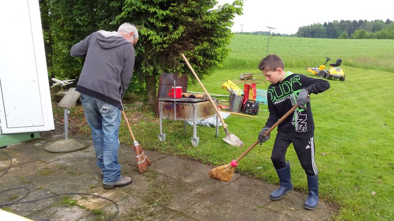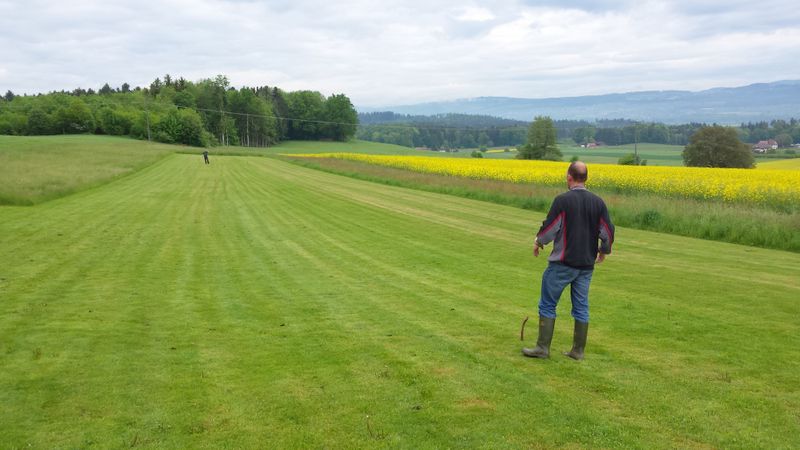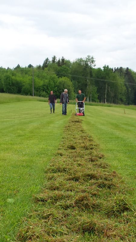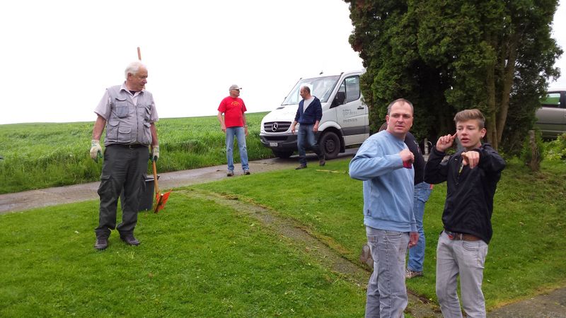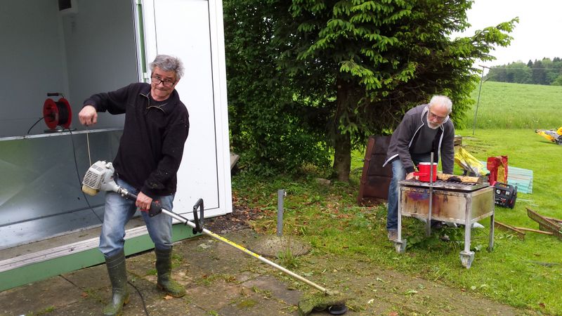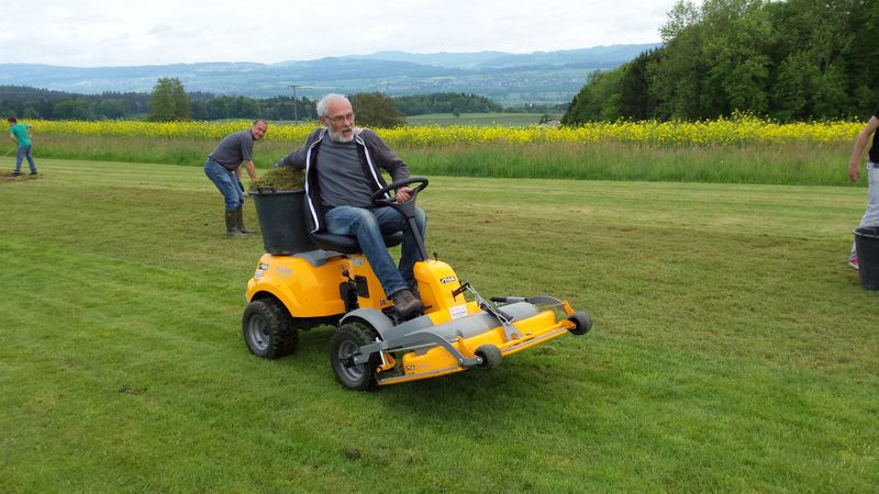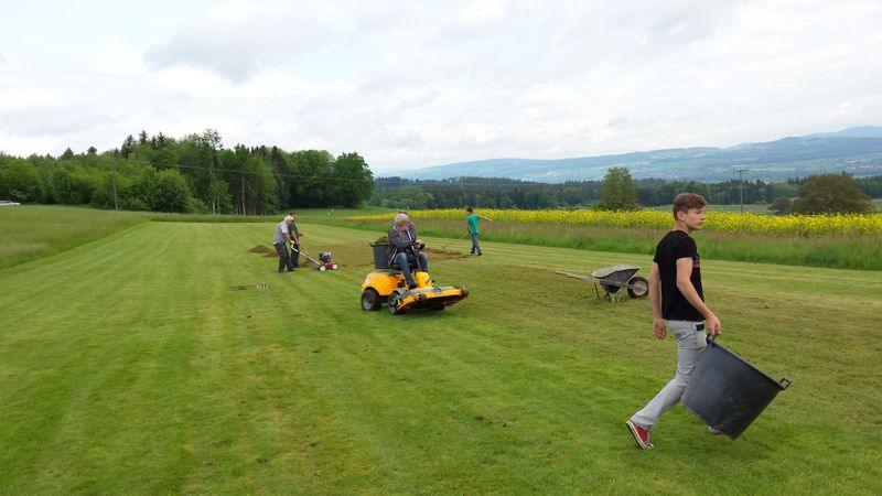 war ein durchschlagender Erfolg! Nicht sehr oft waren so viele, motivierte Mitglieder vor Ort und halfen mit, unseren schönen Flugplatz auf Vordermann zu bringen. Die Sträucher wurden geschnitten, die Rasenkanten freigelegt, der Parkplatz für den Mäher optimiert, der Tisch und die Bänke gestrichen, Holzrinde gestreut; und es wurde „eine Piste in der Piste“ für kleine Modelle vertikutiert. Diese wurde anschliessend durch mich selbst getestet (Voodoo-Mustang mit knapp über 1m Spw. mit EZFW(!)) …und für sehr gut befunden; starten und landen kein Problem. Dieses kleine Race-Modell stellt eine neue Aera im Schaum-Modellflug dar… Mit 4S-Lipo befeuert fliegt sie sehr(…) schnell, sehr wendig, aber auch extrem langsam und gutmütig – ein absoluter Augenschmaus!
