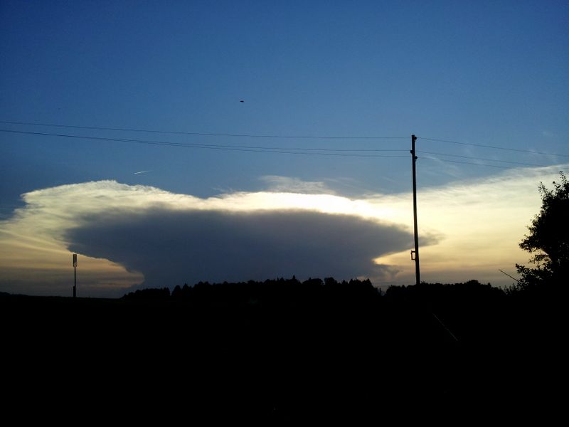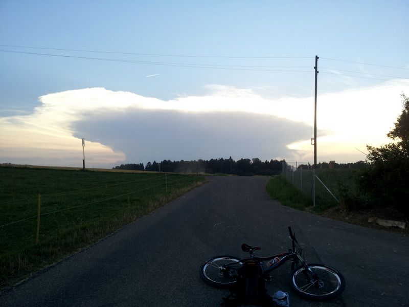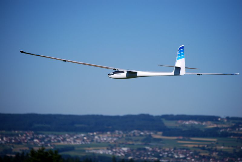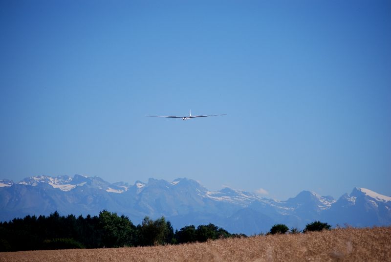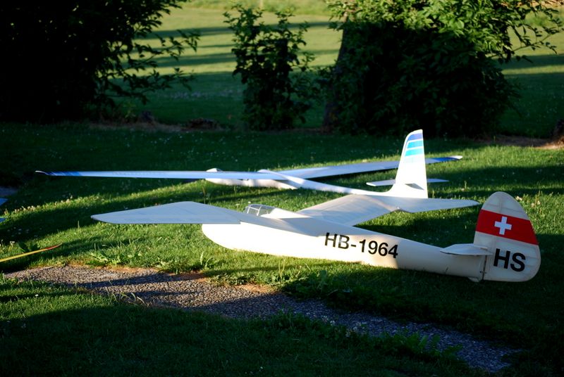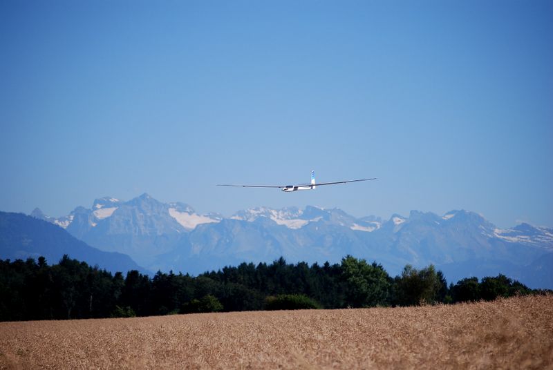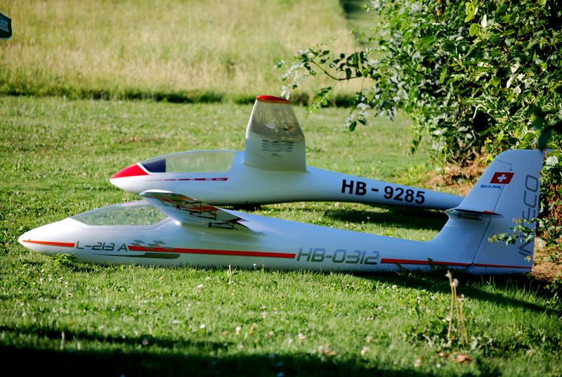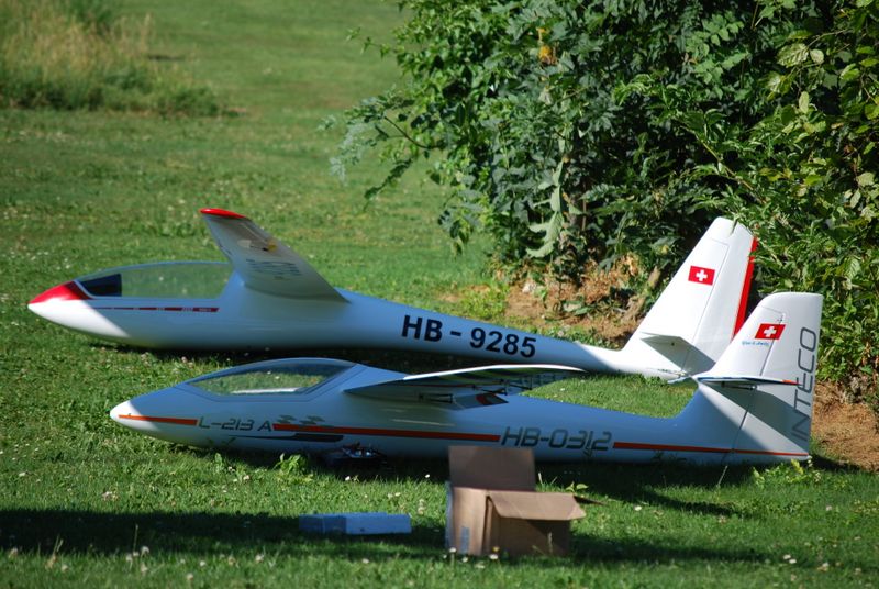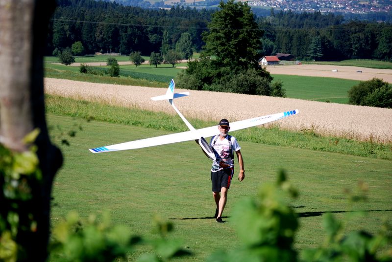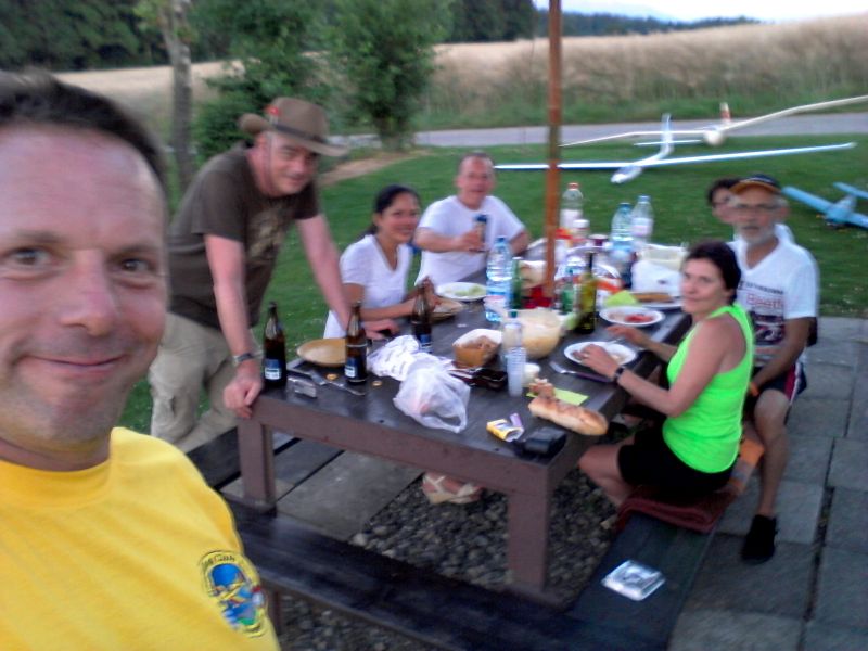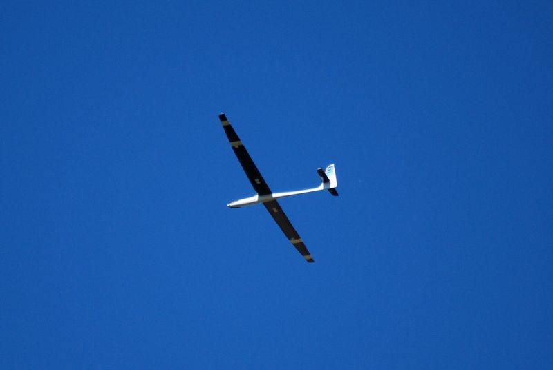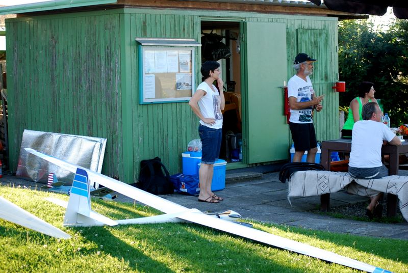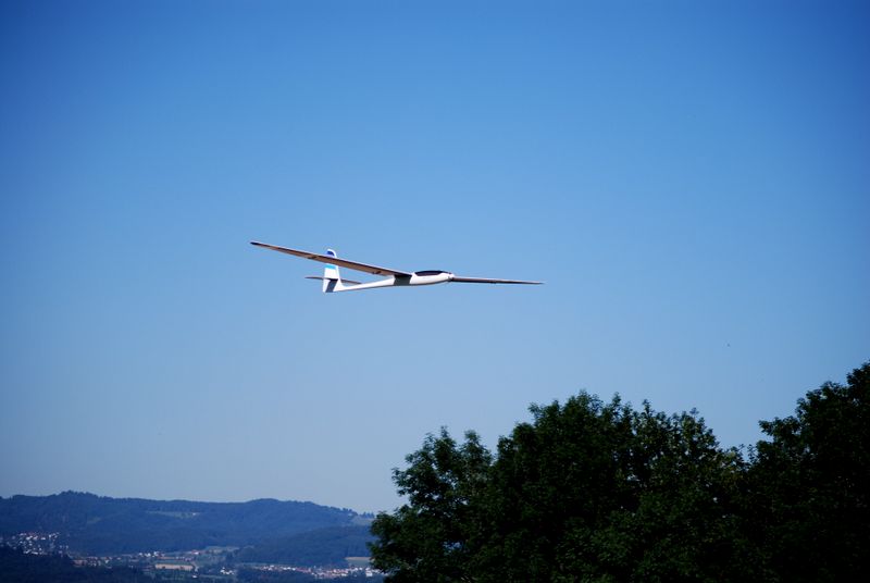 Einen manntragenden Segler (vermutlich eine ASG-29) konnten wir, extrem niedrig fliegend, über unserem Gelände beobachten. Bald fand er jedoch guten thermischen Anschluss und entschwand in sichere Höhen und aus unseren Augen; er war nicht der Einzige (grosse) am heutigen Tage.