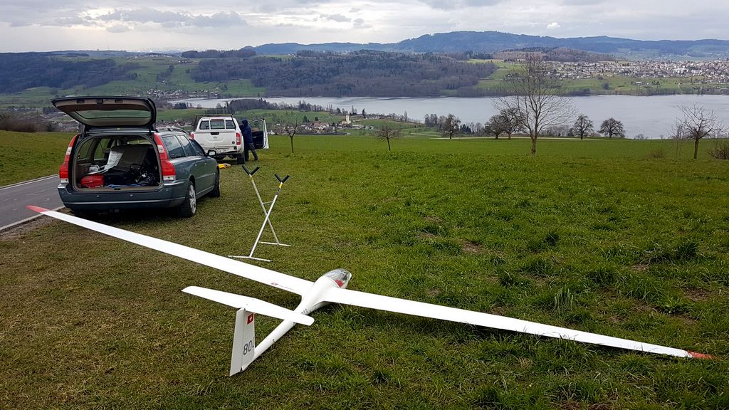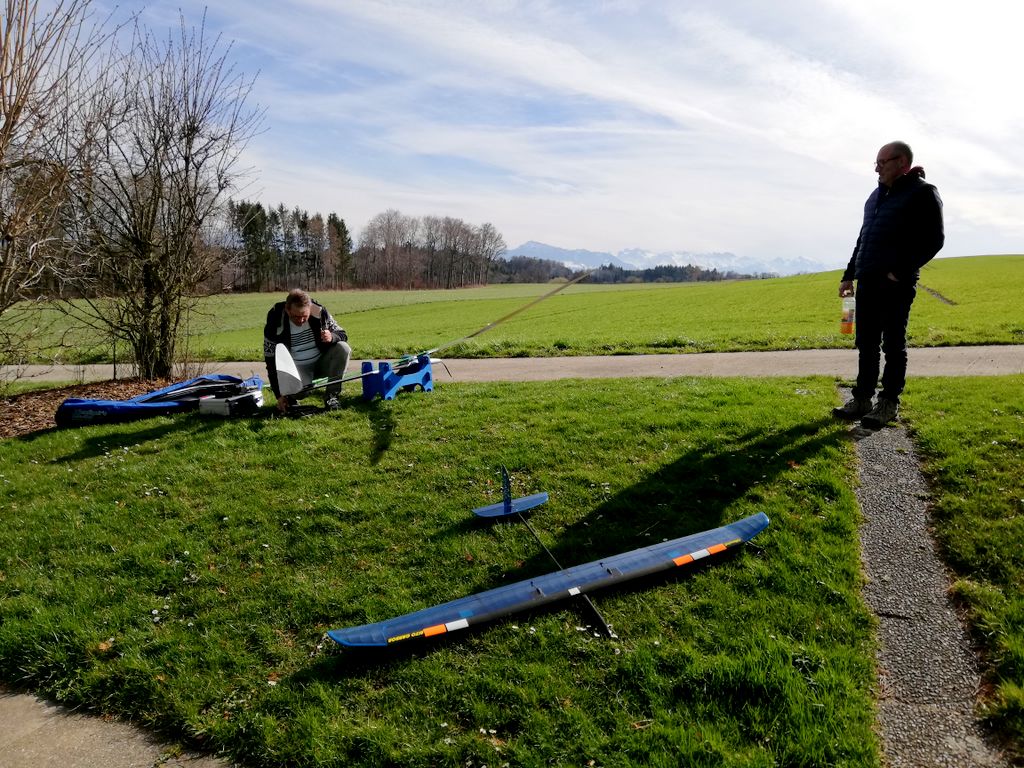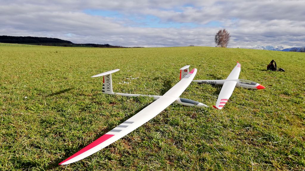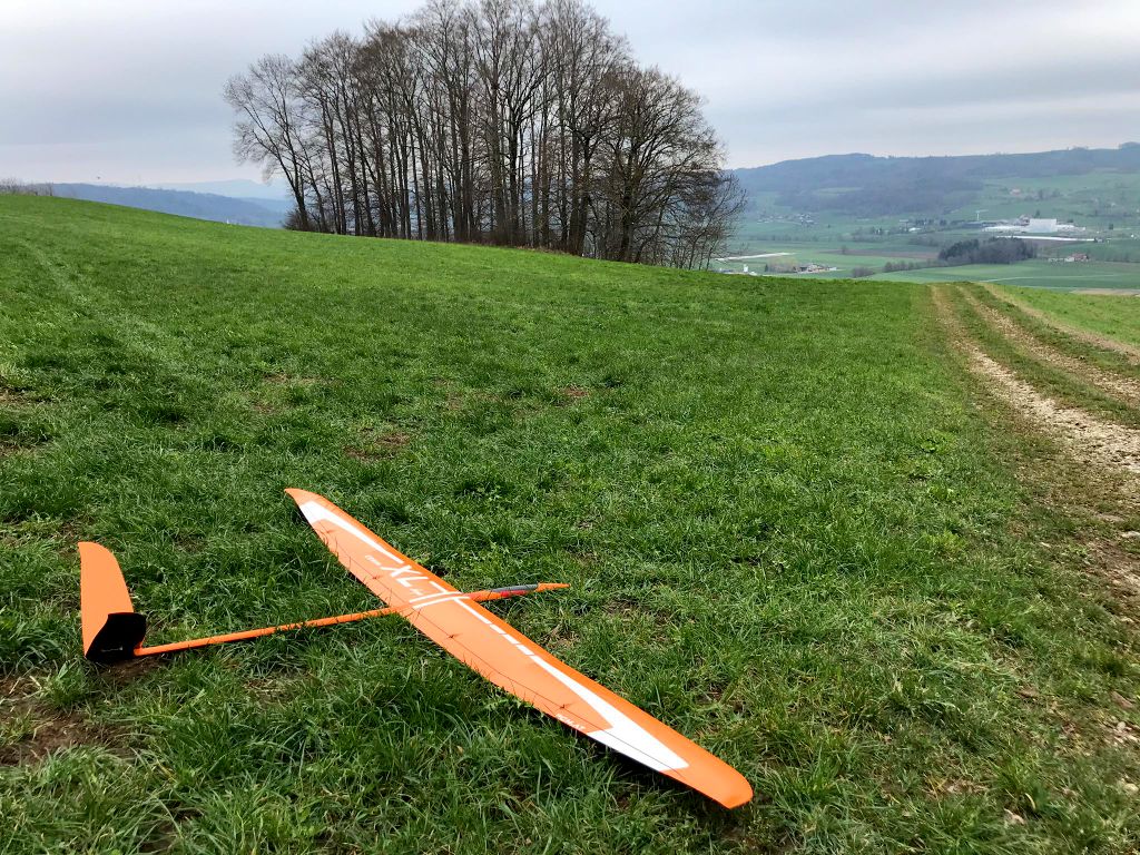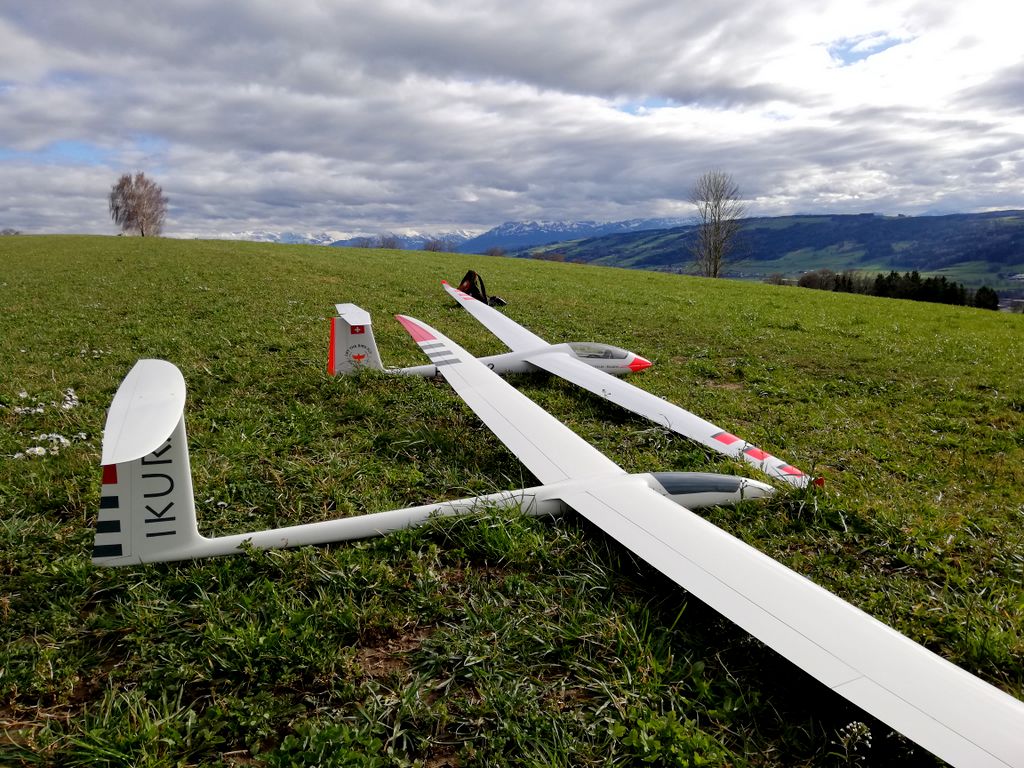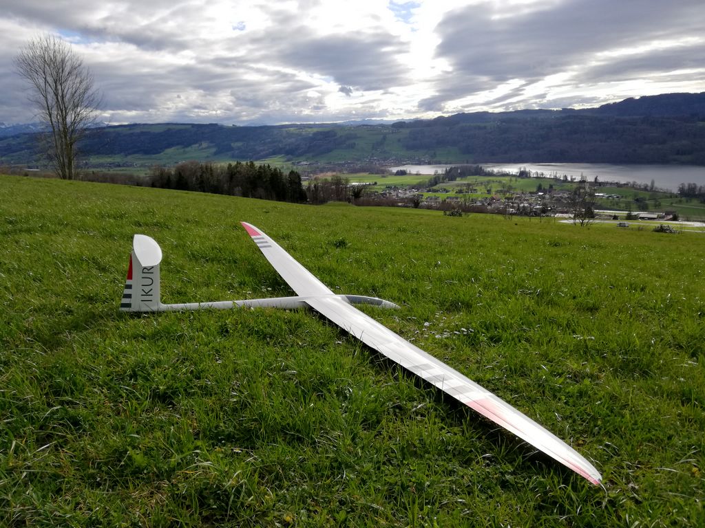 Einen Trainingstag für den (abgesagten) Zäziwiler konnten wir auf unserem Plätzli durchführen. Dann waren wir einmal bei Schwachwind am Hang (Anfang März..) und konnten schöne Thermik ausfliegen. Meine Ikura durfte ihren Maiden in Aesch absolvieren – mit Erfolg! Dank Marios Erfahrungen hatte ich die EWD von vorne weg auf 0.3° reduziert, welches sich als goldrichtig herausstellte. Das Ding flog ohne einen Zacken Trimm schnurstracks geradeaus – was für eine Wonne. Die weiteren Flugaktivitäten und Flügeleigenschaften entnehmt ihr bitte den beigefügten Fotos. Der 4m-Twister (EL-Version in rot-weiss) ist immer noch zu verkaufen… Interessierte können sich einfach bei mir melden.