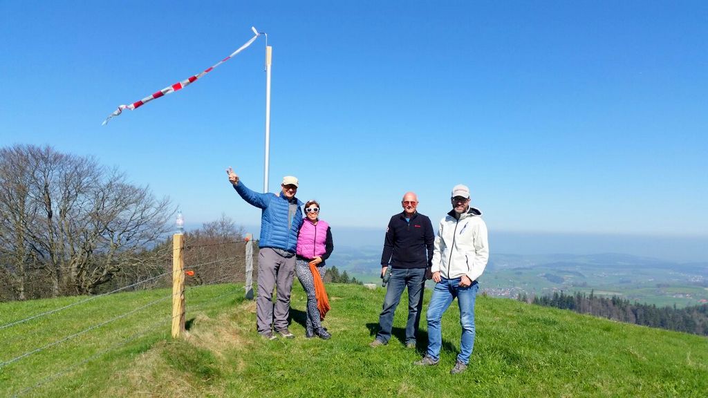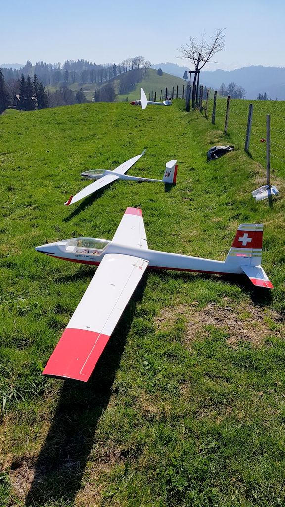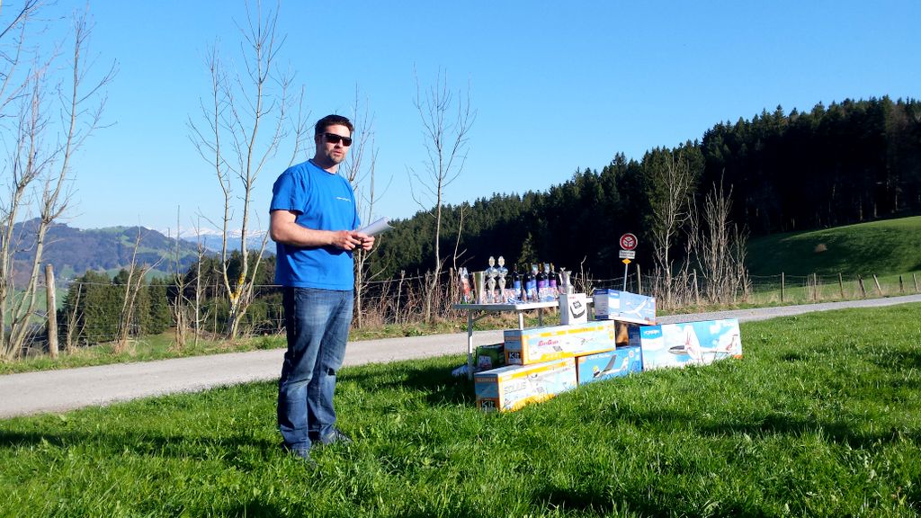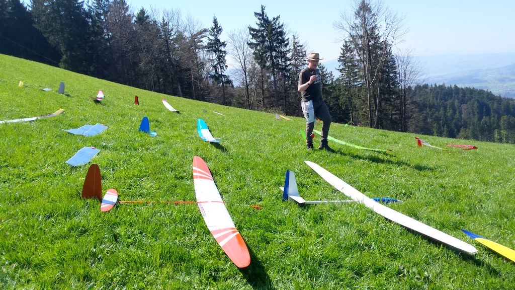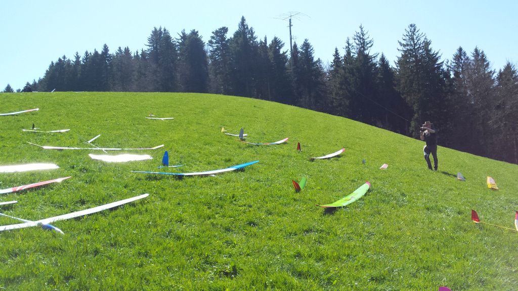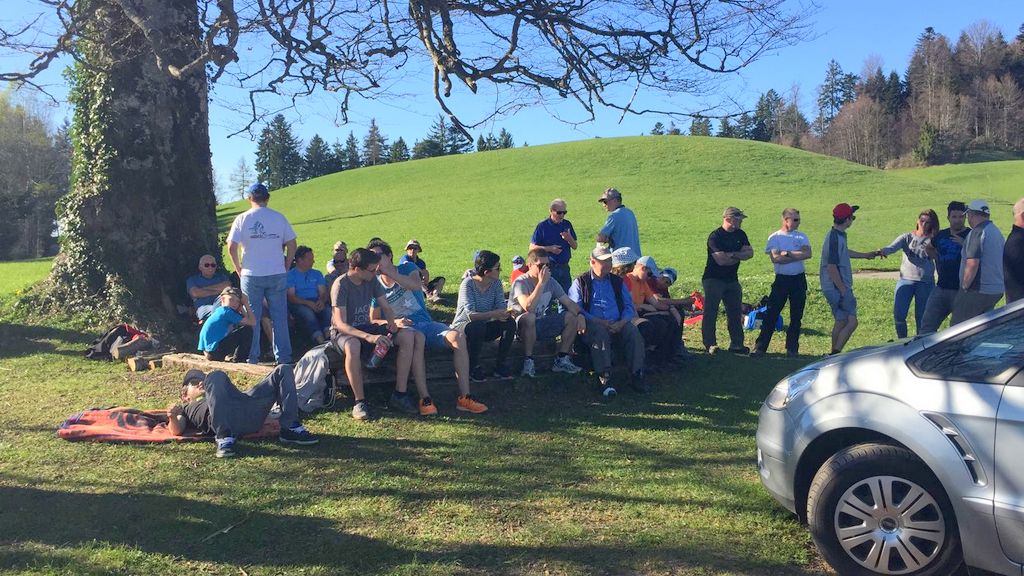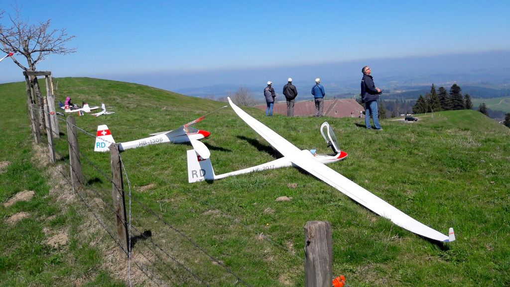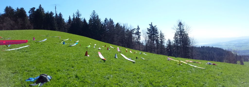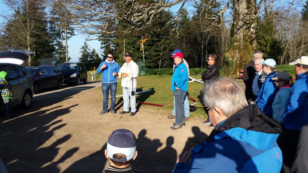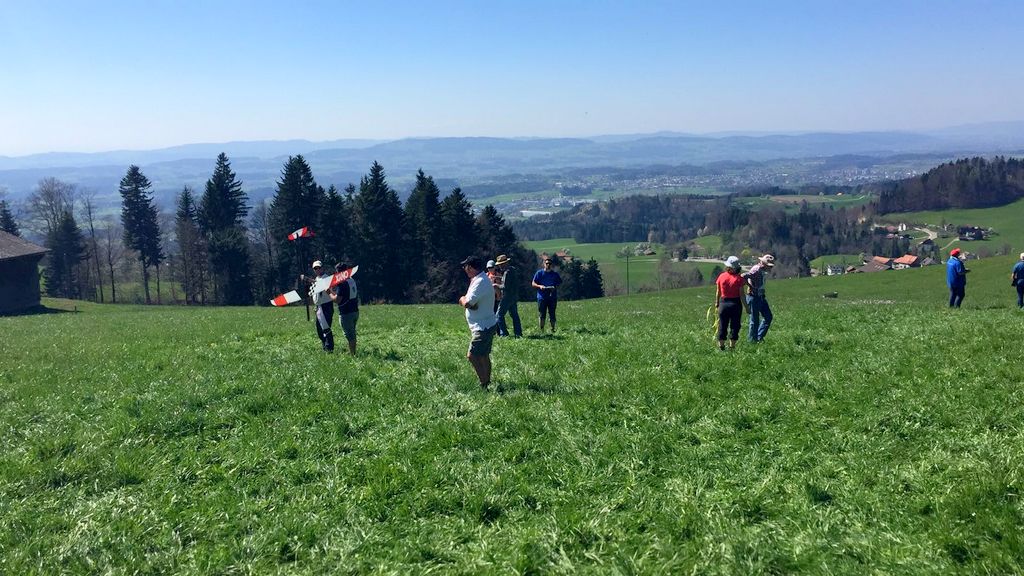 konnte wiederum bei schönstem Frühlingswetter (mit Sonnenbrand-Garantie) durchgeführt werden. Unsereins Piloten (Tobi, Calvin, Hugo, Dieter, Fertsch und Elmer) trafen sich direkt auf der Schaufelbergeregg oberhalb Hinwil, um zeitgerecht am Briefing teil zu nehmen.