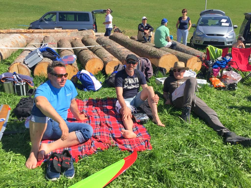 Begonnen wurde der Wettbewerb, wie gewohnt, in östliche Richtung. Allerdings konnte der erste Durchgang nicht einmal fertig geflogen werden, drehte der (Auf-)Wind gen Westen. Auf der Seite ging es dann aber ab… Dank der üppigen Thermik konnten die geforderten 5-Min. Flugzeiten, mit wenigen Ausnahmen, stets erfüllt werden. Die Entscheidungen fielen schliesslich auf wiederholt, präzise Landungen. Wir alle kämpften wacker um Punkte und unser neuer „Rookie“ im Teilnehmerfeld, meisterte die Aufgaben bravourös! Calvin kam, sah und holte sich verdient den Junioren-Titel. (Man beachte die Punktzahl gegenüber der NOS-Junioren) ;-] Den langen und sonnigen Hangflugtag schlossen wir gemeinsam bei einem äusserst gemütlichen Abendessen hoch über dem Zürichsee, ab.