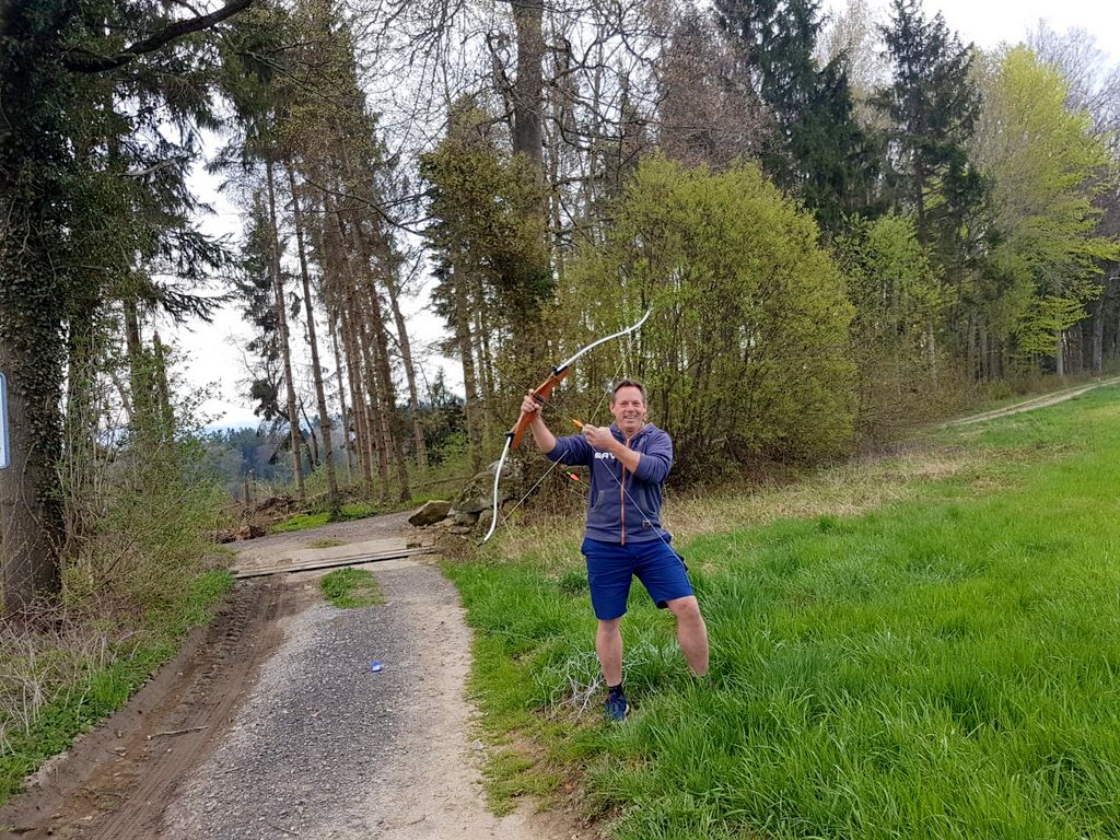 Zum ersten Mal wurde mittels eines Pfeilbogens (und angebrachter Schnur); ein EPP-Modell (Corsair) aus den (hohen) Fängen der gemeinen Bäume befreit… hat wunderbar geklappt!