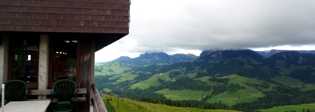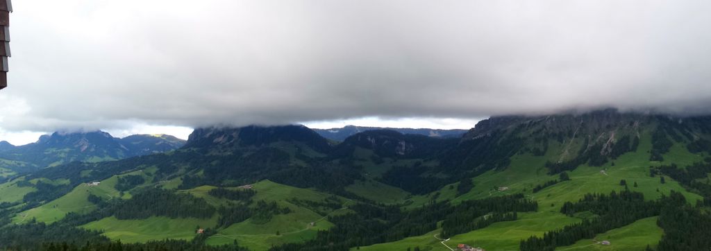dieses fiel leider, leider… wegen der schlechten Witterung schon wieder ins Wasser; unglaublich so etwas. Einige Unentwegte wagten sich dann am Sonntag (trotz Regen bis 13h!) doch noch auf den Berg und erlebten ein Naturschauspiel und Flugverhältnisse, wie man sie bisher ziemlich selten antraf. Der ‚Deckel‘ war ständig drauf.. auf dem First; wie auch auf den umliegenden Bergen. Dennoch schien die Sonne ins Unterland und produzierte genügend warme Luft, welche uns bis auf den First hinauf entgegen zog. So konnten wir (zugegebenermassen unverhofft) ausgiebig fliegen, bis uns ‚kalt‘, oder langweilig wurde. ;-] Zum Glück gibt’s bei Rösli/Klaus und dem ganzen First-Team immer etwas zum Aufwärmen, Sättigen und die Stimmung zu erhalten. Es war ein richtig gemütlicher (weil wenig Leute..) und tröstender Nachmittag eines verregneten Pfingst-Weekends – aber so was von genial!