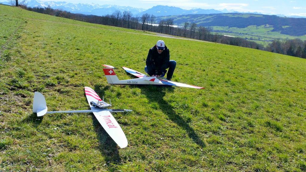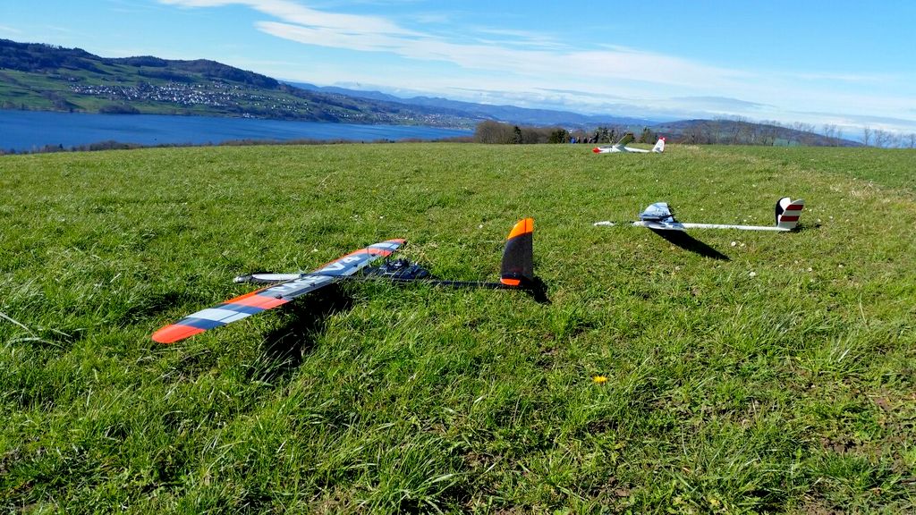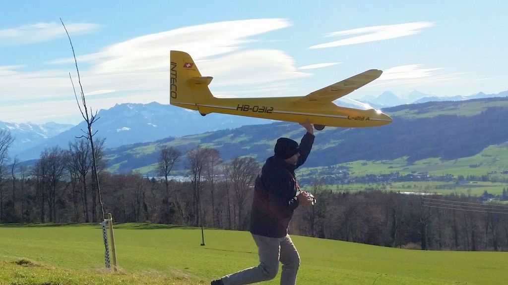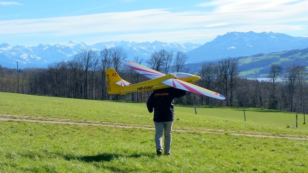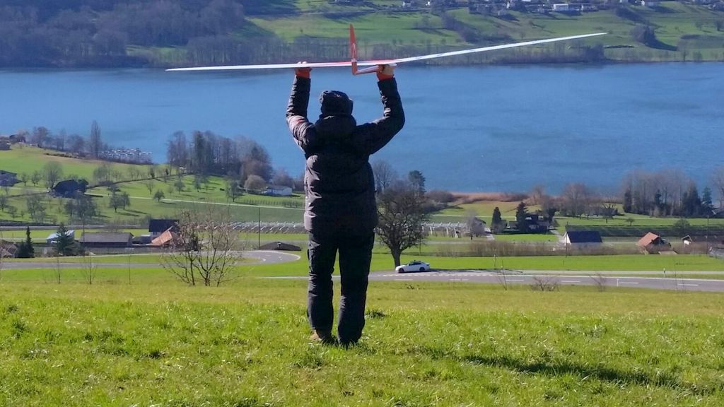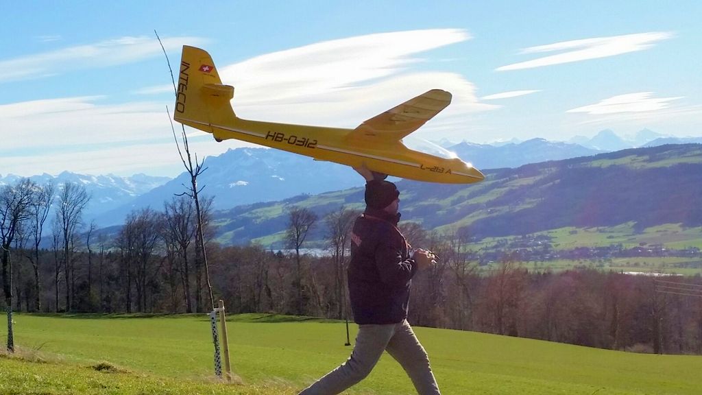 inzwischen waren wir (schon) wieder J ein paar Mal in Aesch zum Hangfliegen. Mal bei fast null Wind, die Super Ava Pro einfliegen, und das andere Mal bei gutem Wind mit allen möglichen Scale-Modellen. An einem Nachmittag fanden wir eine schöne, labile Wetterlage vor und Martin packte kurzerhand seinen Gleitschirm für ein paar Startversuche aus. Es klappte recht gut und für ein paar Momente konnte er sogar ein ganz wenig überhöhen; cool zum Beobachten – da kribbelt’s schon in den Fingern und im Hintern!