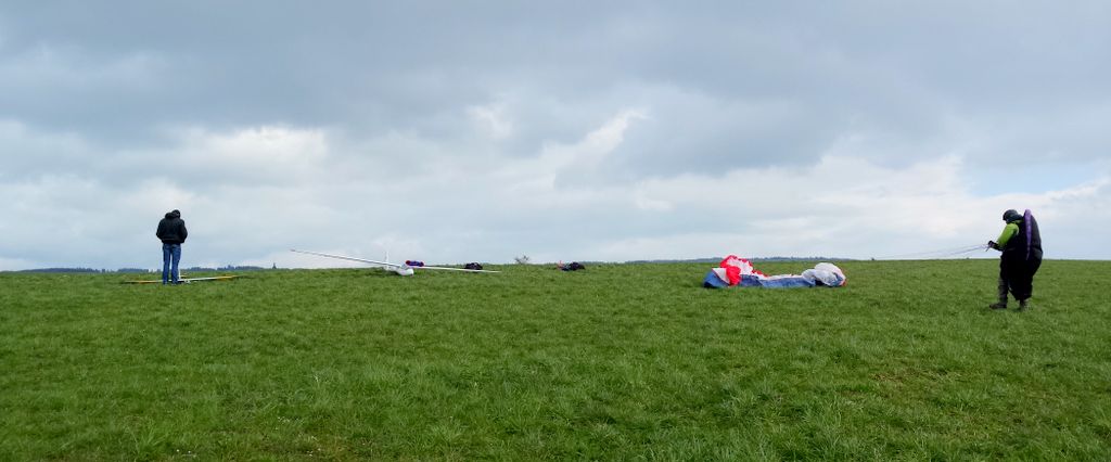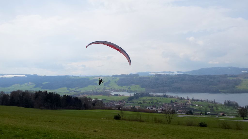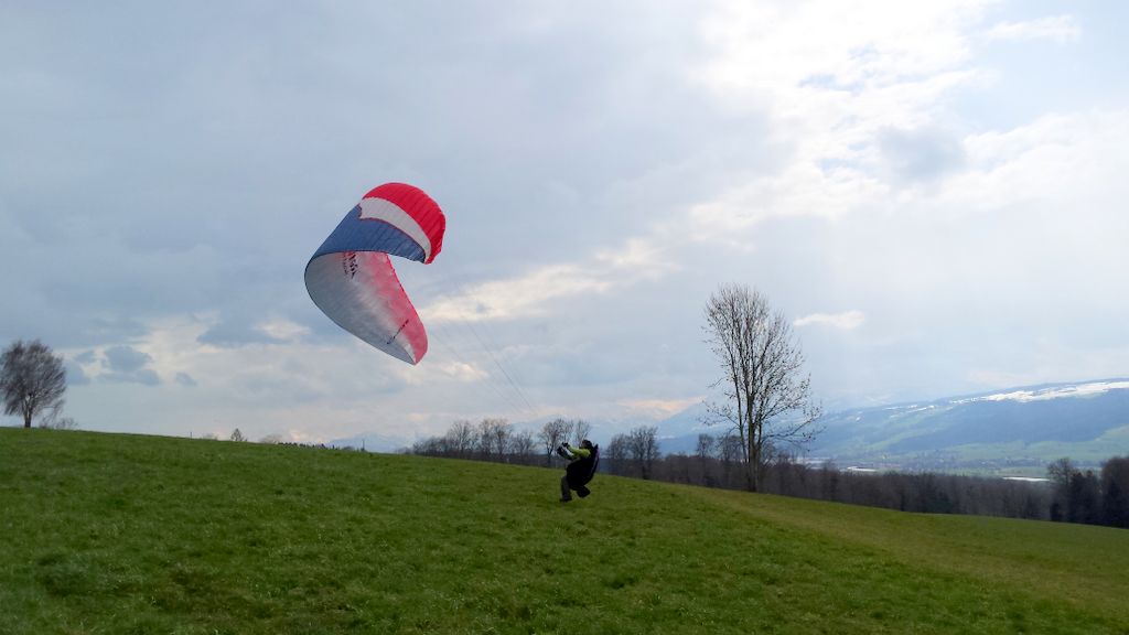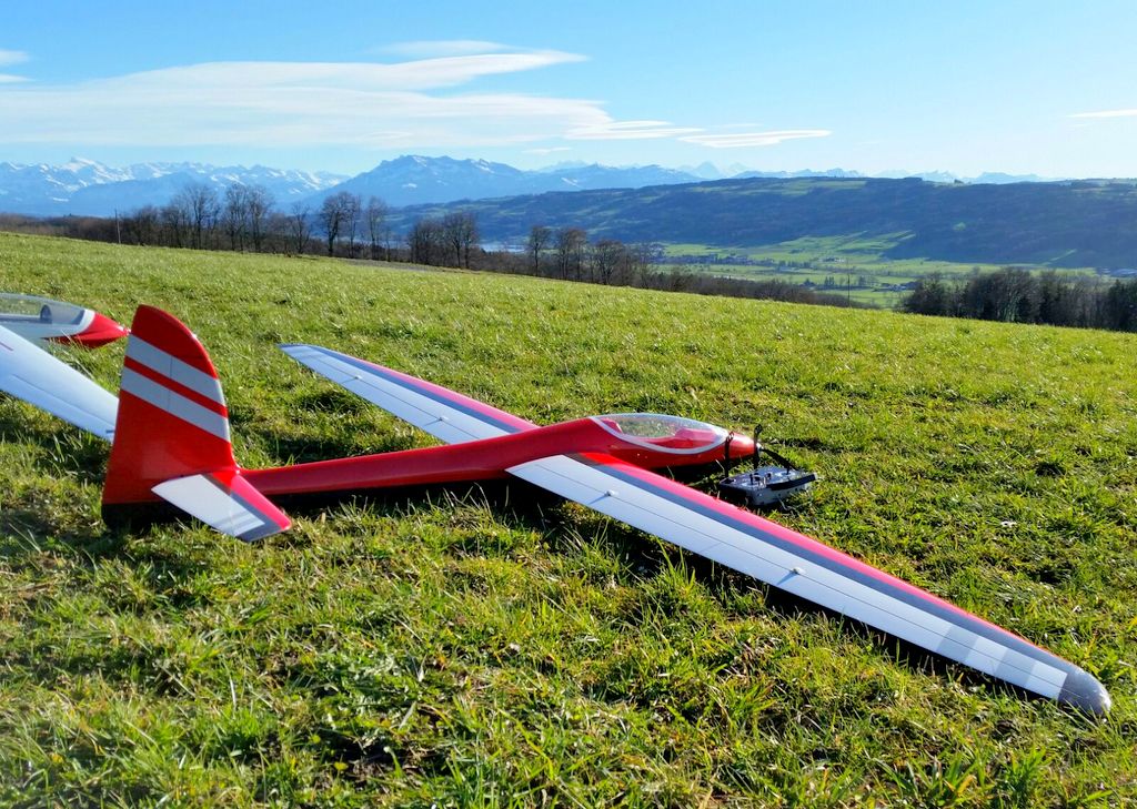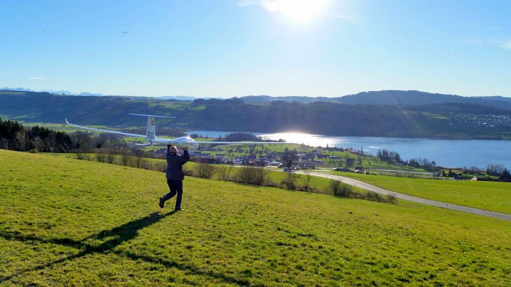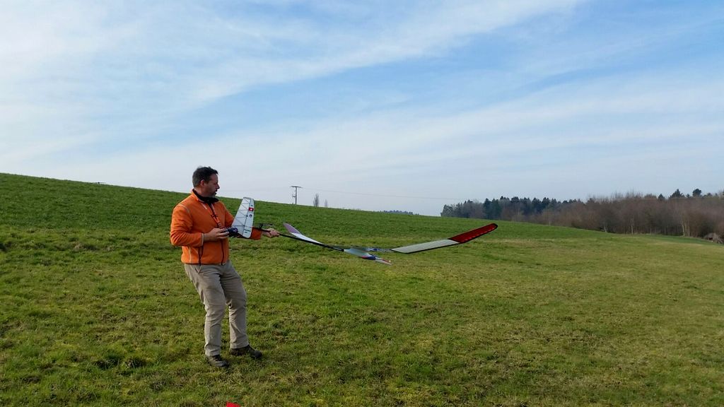 inzwischen waren wir (schon) wieder J ein paar Mal in Aesch zum Hangfliegen. Mal bei fast null Wind, die Super Ava Pro einfliegen, und das andere Mal bei gutem Wind mit allen möglichen Scale-Modellen. An einem Nachmittag fanden wir eine schöne, labile Wetterlage vor und Martin packte kurzerhand seinen Gleitschirm für ein paar Startversuche aus. Es klappte recht gut und für ein paar Momente konnte er sogar ein ganz wenig überhöhen; cool zum Beobachten – da kribbelt’s schon in den Fingern und im Hintern!