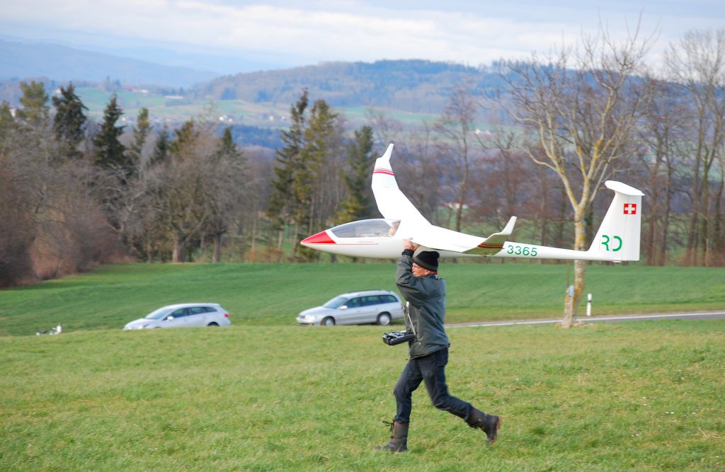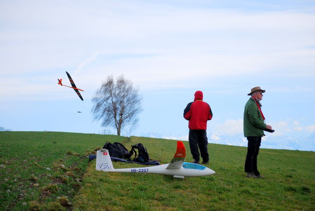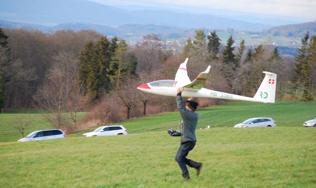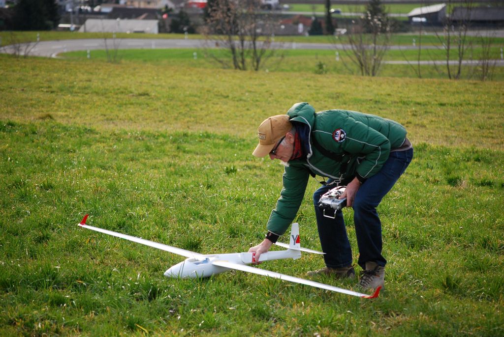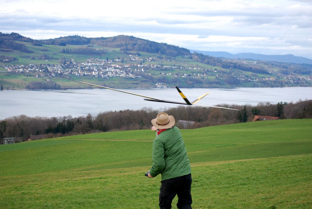 Robi war auch bereits mehr als einmal vor Ort und oje; nicht jeder Start seiner Riesen-Modelle klappt immer auf Anhieb. Wer aber Robi kennt der weiss, er gibt nicht auf und wirft so lange und so oft… bis es fliegt. Seine Devise: „nie uufgääh“!