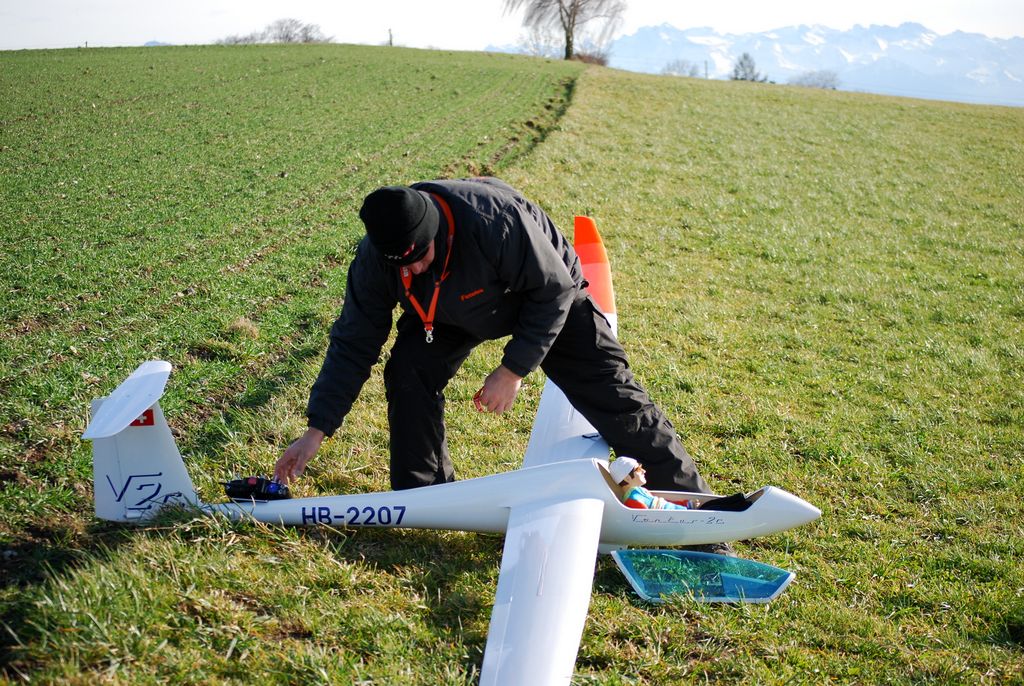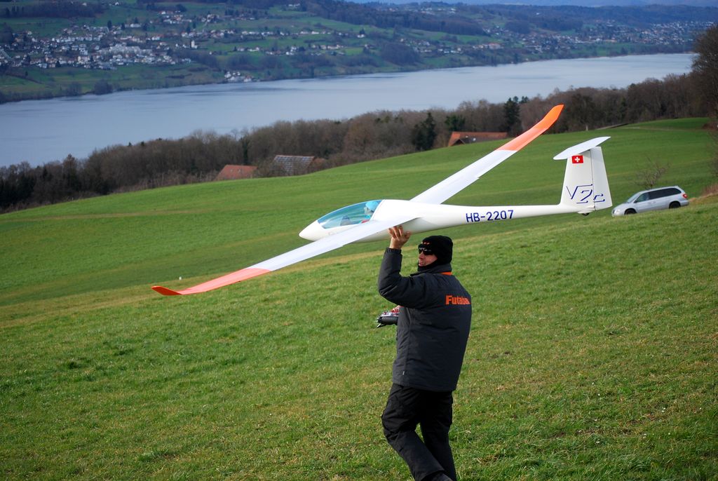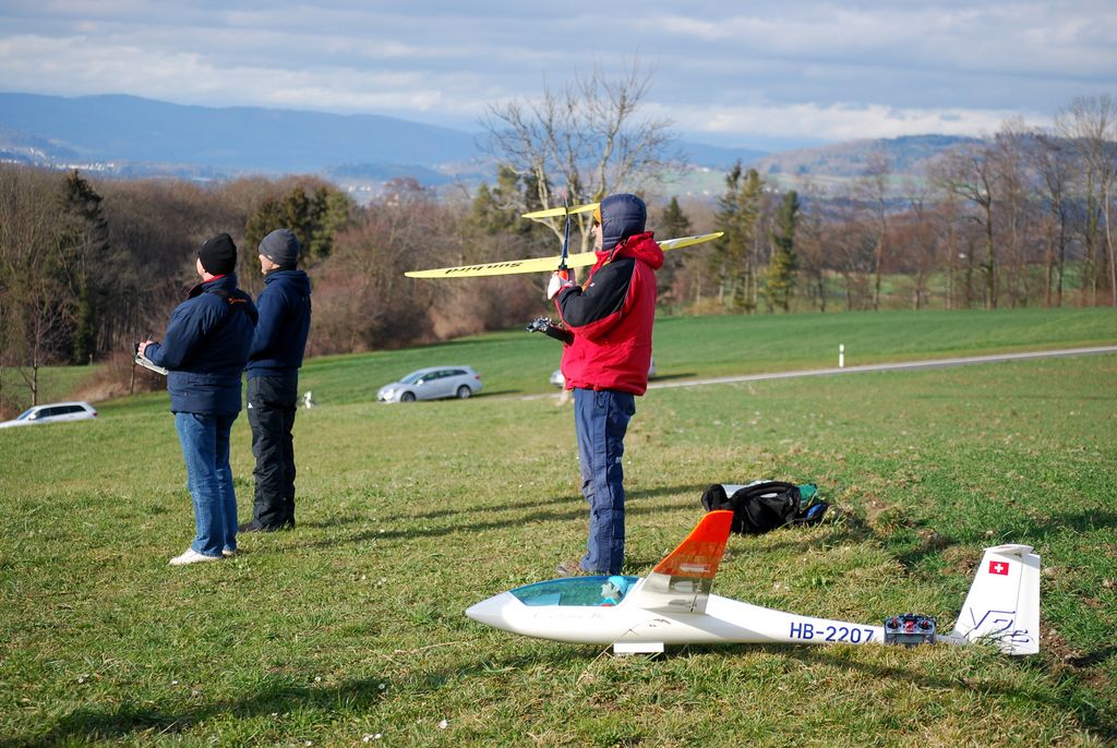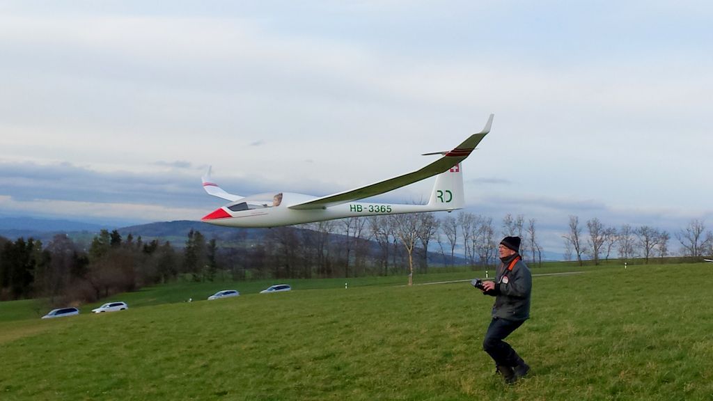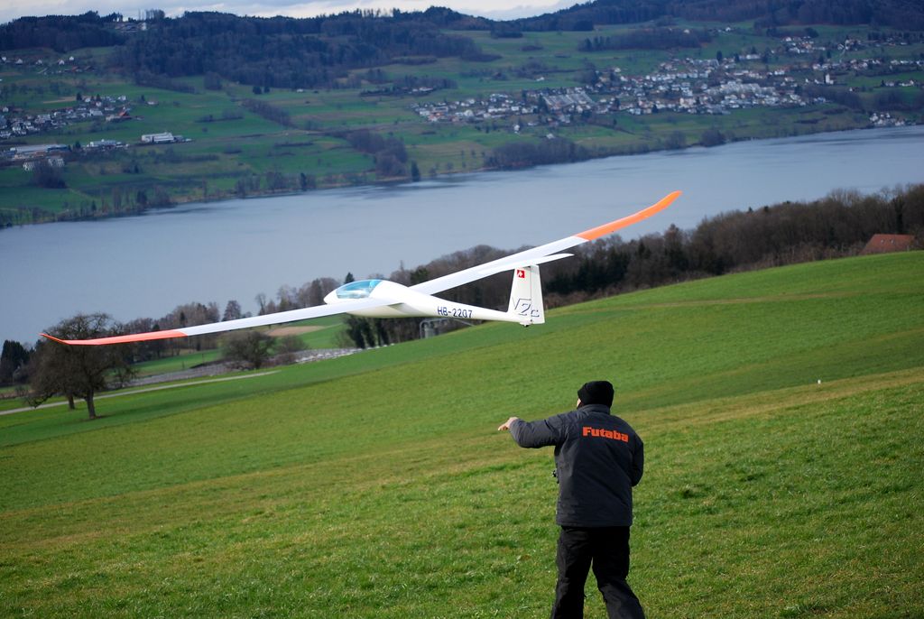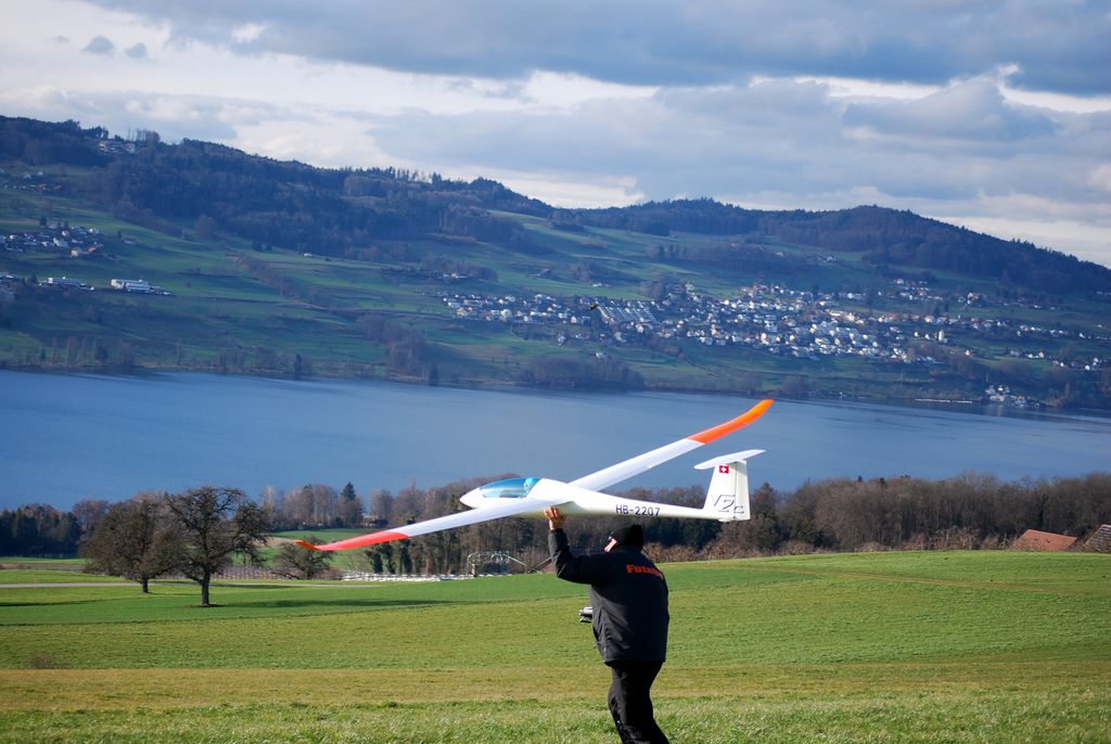 Robi war auch bereits mehr als einmal vor Ort und oje; nicht jeder Start seiner Riesen-Modelle klappt immer auf Anhieb. Wer aber Robi kennt der weiss, er gibt nicht auf und wirft so lange und so oft… bis es fliegt. Seine Devise: „nie uufgääh“!
