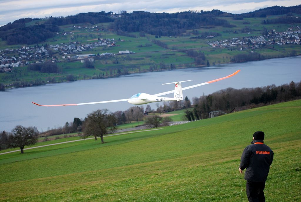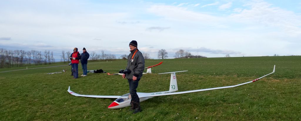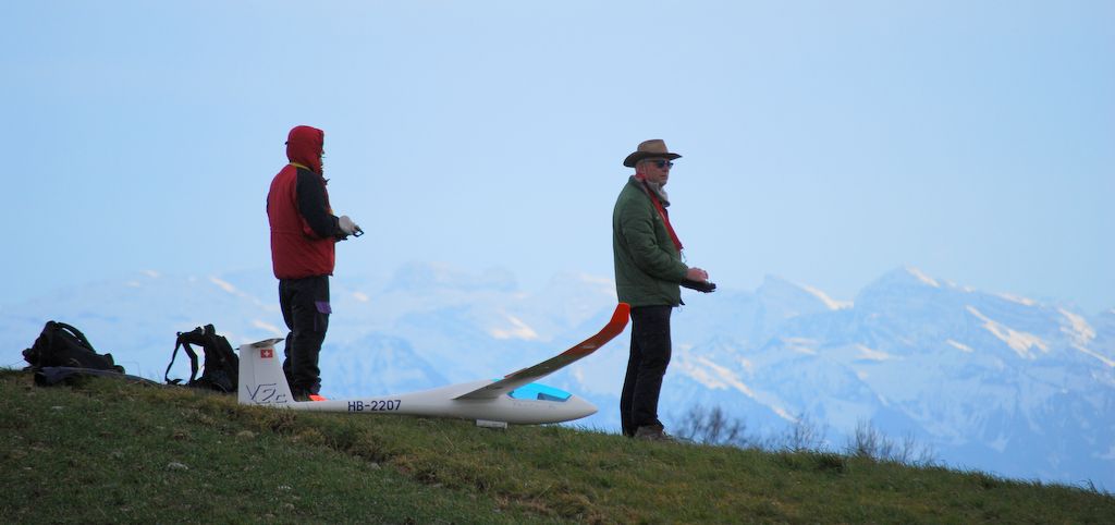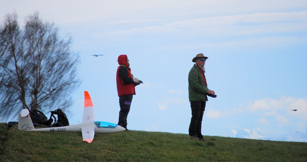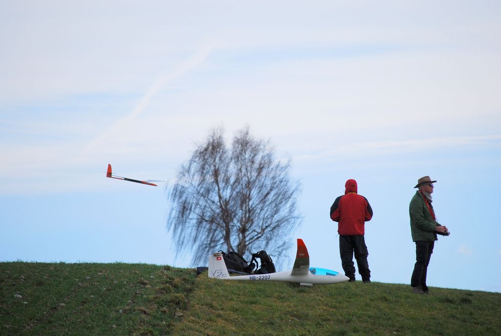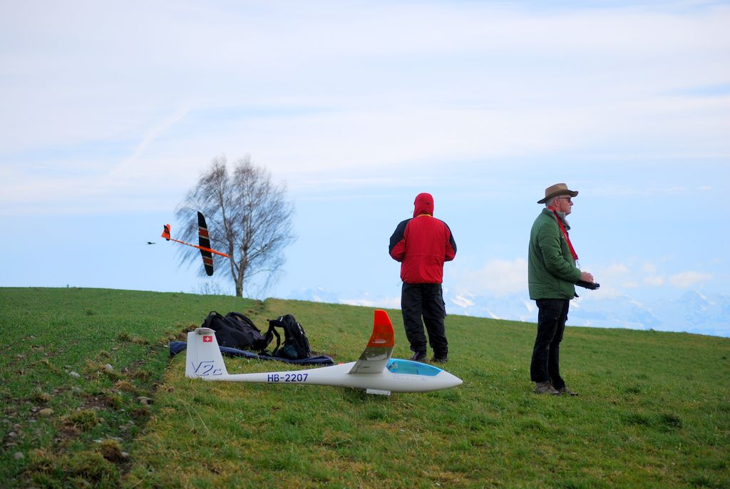 Guido macht auch fleissig neue Erfahrungen am Hang und es klappt schon sehr gut. Dieser junge Mann will es sogar richtig wissen; er hat sich bereits für die Teilnahme (wie auch Fertsch wiederJ) am Hangflugwettbewerb in Zäziwil angemeldet – bravo!