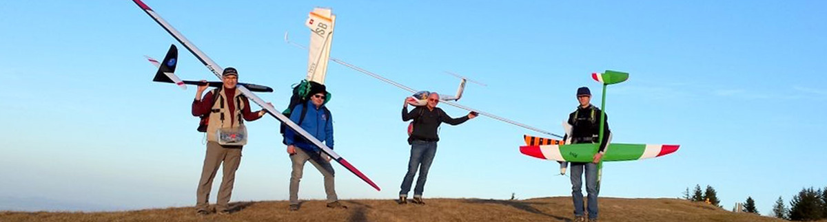 Ohne Akkus nachladen zu müssen (Lipo sei Dank!), packte ich die Alpina in den Rucksack und war bereit für einen letzten Gang auf den Gnipen im 2015. Zu fünft hatten wir beim Parkplatz bei der Kapelle abgemacht um den Marsch anzugehen; bei deutlichen +Graden verschwanden die warmen Jacken schnell wieder im Rucksack. Hier über dem Nebel herrschte wunderbares und sonniges ‚Winterwetter‘ mit einer genialen Aussicht. Der Südwind blies etwas schwach, aber spürbar und liess uns für gutes Fliegen hoffen. Schnell waren die Modelle zusammengestellt und auch schon über den Abbruch dem Element übergeben. Im knappen Aufwind hiess es, immer schön der Kante entlang fliegen; wurde eine gewisse Höhe, unter Putz, unterschritten, war klar; vorne um den Hang fliegen (wo meist nochmals etwas Thermik vorhanden war..) und von der Nordseite her die Wiese hinauf landen. Leider liess der Wind im Laufe der Zeit deutlich nach und auch die sehnlichst erwartete Thermik war sehr schwach. Dennoch genossen wir dieses Traumwetter mit einem feinen Vesper aus dem Rucksack.