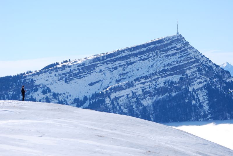Dann am Sonntag, dem vermeintlich ersten Hallenflugtag, sollte es die Nebelobergrenze nicht höher als 1’200 m ü.M schaffen und die Temperaturen sich deutlich im Plusbereich aufhalten. Dieser Prognose, mit einem Hauch von Nordwestwind als i-Tüpfelchen, konnte ich nicht widerstehen und wagte den Marsch auf den Gnipen, oben auf dem Wildspitz.