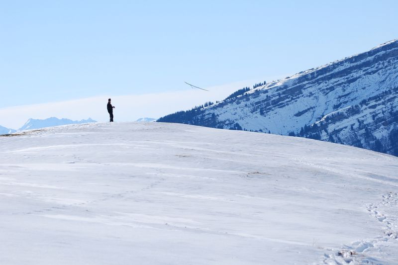 Bevor es mich jedoch in die Halle zog, hatte ich noch die letzten guten Wind- und Wettersituationen für’s Hangsegeln ausgenutzt. Am Samstag flog ich oben im Schlatt über eine Stunde lang einen guten Ostwind (Bise); ausgerüstet mit Skihose- und Jacke, Mütze, Buff und Handschuhen konnte man unter der Nebeldecke fliegen, so lange bis einem (zu) kalt wurde. Erstaunlicherweise hatte es sogar so gut getragen, dass nur der Nebel die Flughöhe begrenzte. Auch Matthias war fleissig am Heli Flugstunde geben und trotzte zusammen mit den Flugschülern, tapfer dem doch ziemlich fröstlichen Wetter.