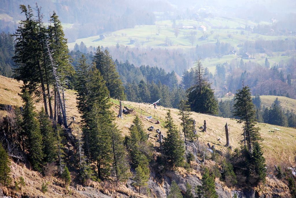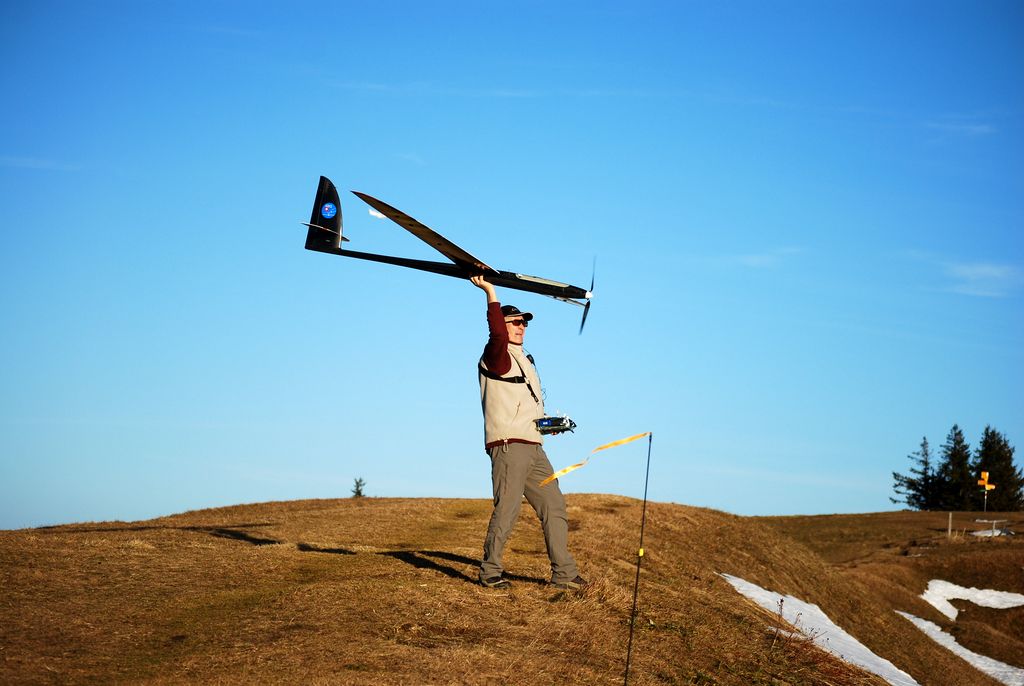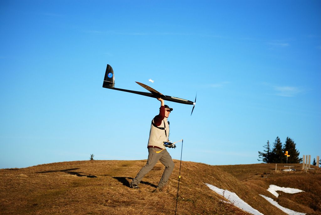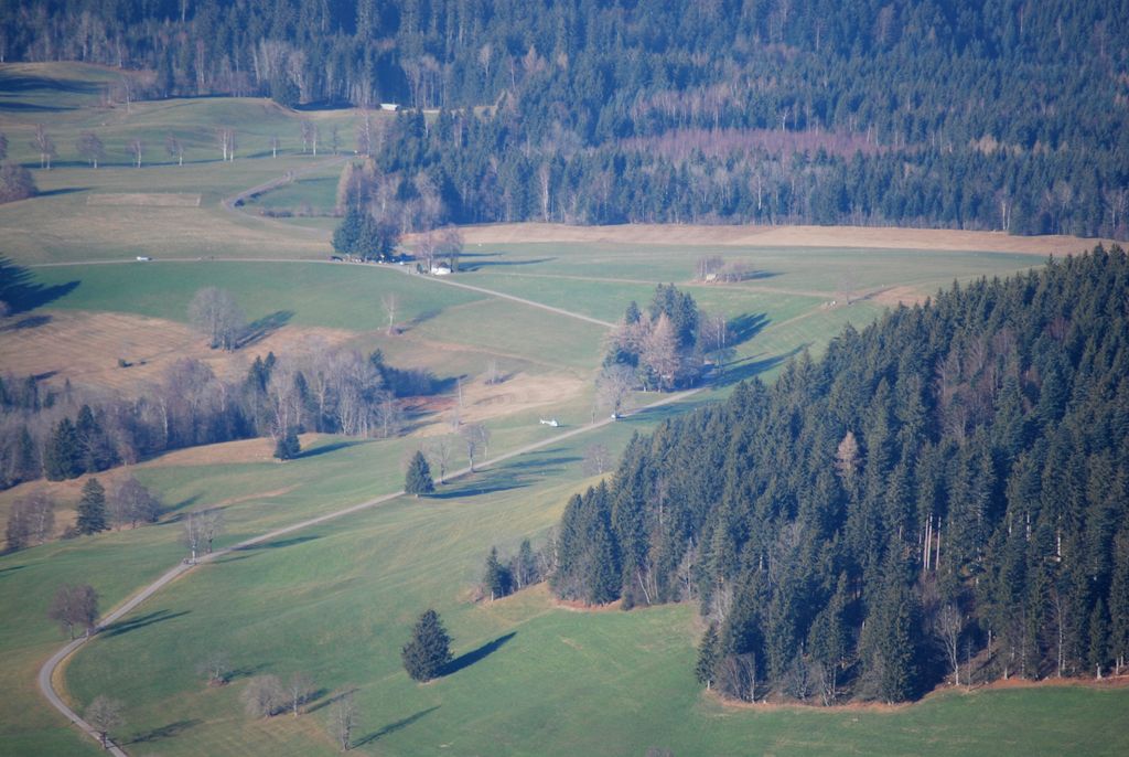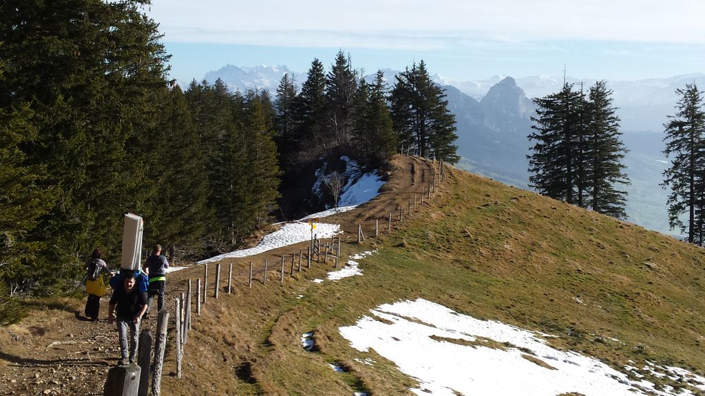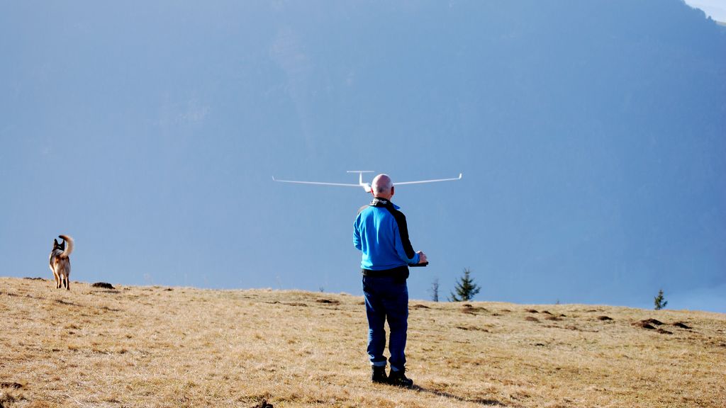Ohne Akkus nachladen zu müssen (Lipo sei Dank!), packte ich die Alpina in den Rucksack und war bereit für einen letzten Gang auf den Gnipen im 2015. Zu fünft hatten wir beim Parkplatz bei der Kapelle abgemacht um den Marsch anzugehen; bei deutlichen +Graden verschwanden die warmen Jacken schnell wieder im Rucksack. Hier über dem Nebel herrschte wunderbares und sonniges ‚Winterwetter‘ mit einer genialen Aussicht. Der Südwind blies etwas schwach, aber spürbar und liess uns für gutes Fliegen hoffen. Schnell waren die Modelle zusammengestellt und auch schon über den Abbruch dem Element übergeben. Im knappen Aufwind hiess es, immer schön der Kante entlang fliegen; wurde eine gewisse Höhe, unter Putz, unterschritten, war klar; vorne um den Hang fliegen (wo meist nochmals etwas Thermik vorhanden war..) und von der Nordseite her die Wiese hinauf landen. Leider liess der Wind im Laufe der Zeit deutlich nach und auch die sehnlichst erwartete Thermik war sehr schwach. Dennoch genossen wir dieses Traumwetter mit einem feinen Vesper aus dem Rucksack.