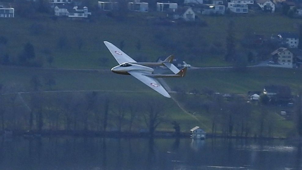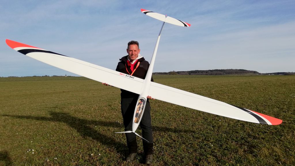 Gegen Ende des Monats fanden wir tolle Bedingungen in Aesch vor und konnten u.a. die Maiden-Flight’s einer kleinen Bichler-ASW24 (von Thomas) und meiner Finesse von Valenta wagen. Alles verlief im grünen Bereich und wir trugen schöne Erinnerungen mit nach Hause. Die Finesse ist ein wirklich ausserordentlich gut fliegender Allrounder in der 4m-Klasse (Zweck-Scale). Das Modell spricht vorzüglich auf Thermik an, „schlüüft“ gut durch, kann auch schnell und Figuren fliegen… kein Problem. Sie kann meiner Meinung nach alles – mit ca. 15% besser als eine Alpina 4001 (und das ist ja auch ein guter Segler). Dieter’s Vampire durfte dann auch noch einmal Hangluft schnuppern; ein absolut cooles Flugbild wirft dieser ab!