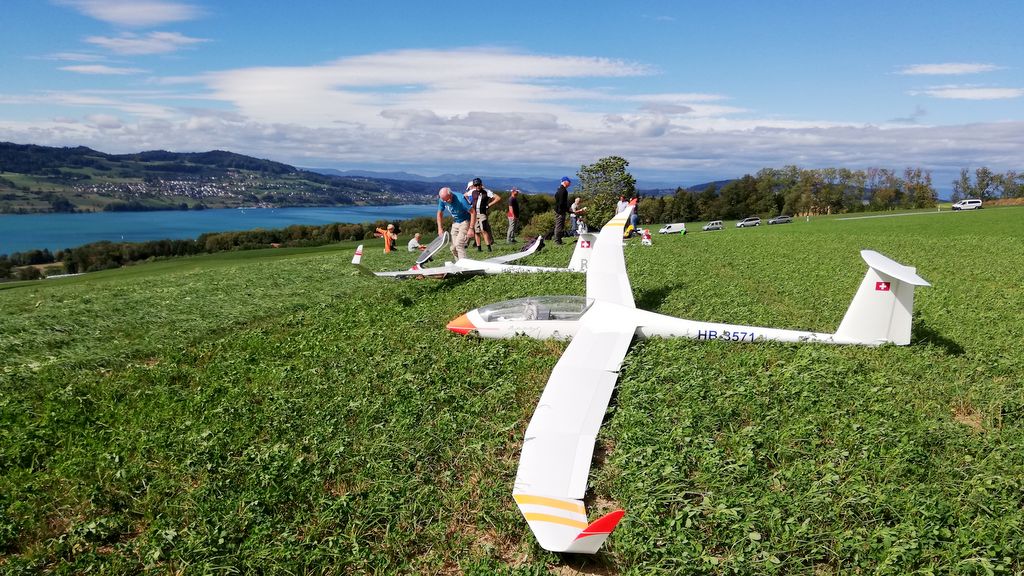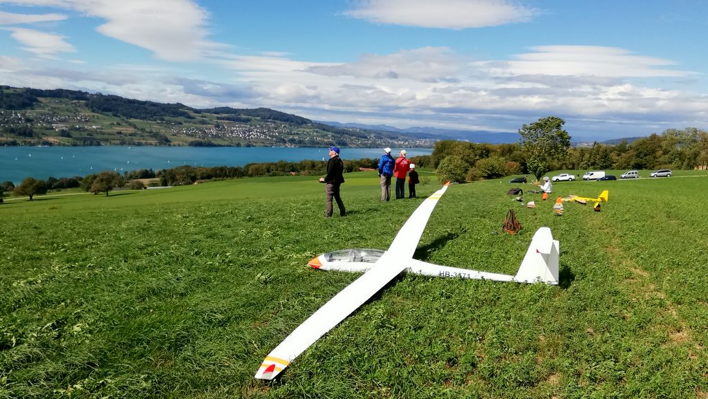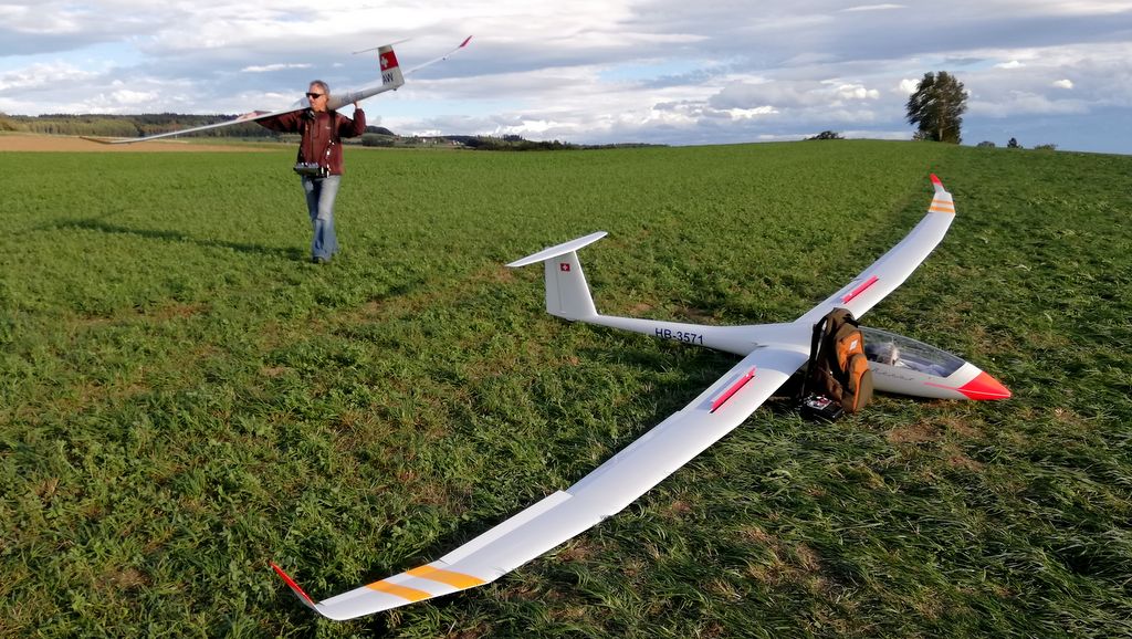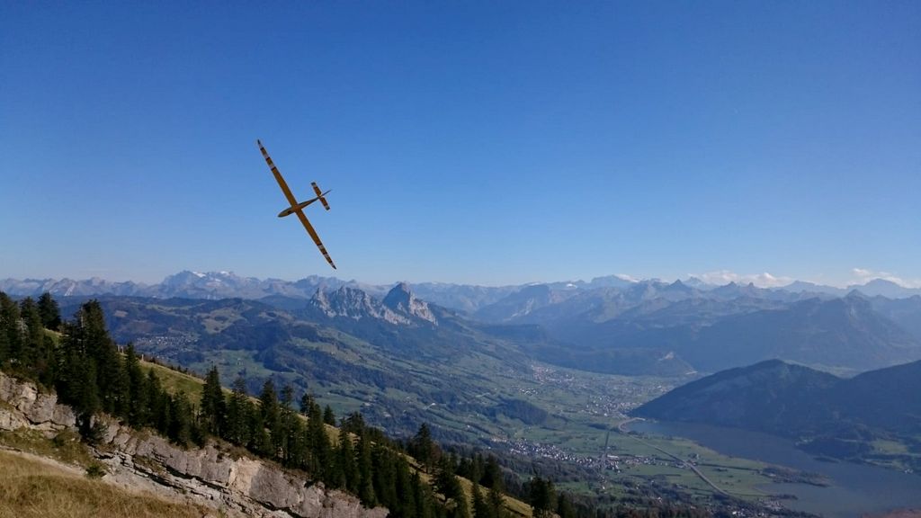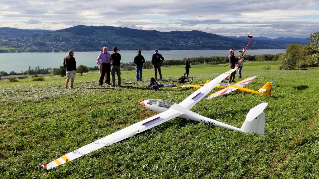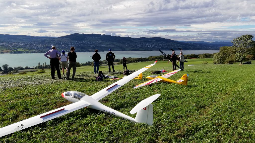 Natürlich liessen wir diesen nicht ungenutzt an uns vorbei ziehen… sondern liessen es noch einmal so richtig krachen. Ob auf dem Hahnenmoos, dem Gnipen, dem Lindenberg oder sonst wo auf einem Hügel; wir wurden ordentlich mit guten Flugbedingungen verwöhnt. Bei äusserst gutem Westwind war unser Hausberg am 23. September sehr gut besucht. An diesem Tag war es möglich, alles fliegen zu lassen, was Flügel hat. Robi und Elmer übten sich im Staffelflug, diverse L-213, Shinto, Stingray etc. waren anzutreffen und es pfiff immer wieder von den Seiten oder von oben herab; ein toller Tag. Urs P. war von der Flugdynamic des Arcus -am Hang- begeistert! Er drehte noch ein paar Bewegende Bilder – besten Dank! (übrigens… wer mal keine Zeit/Lust hat zum selber bauen: www.flyhard.ch)