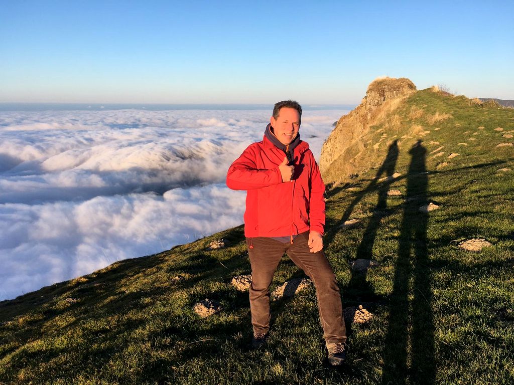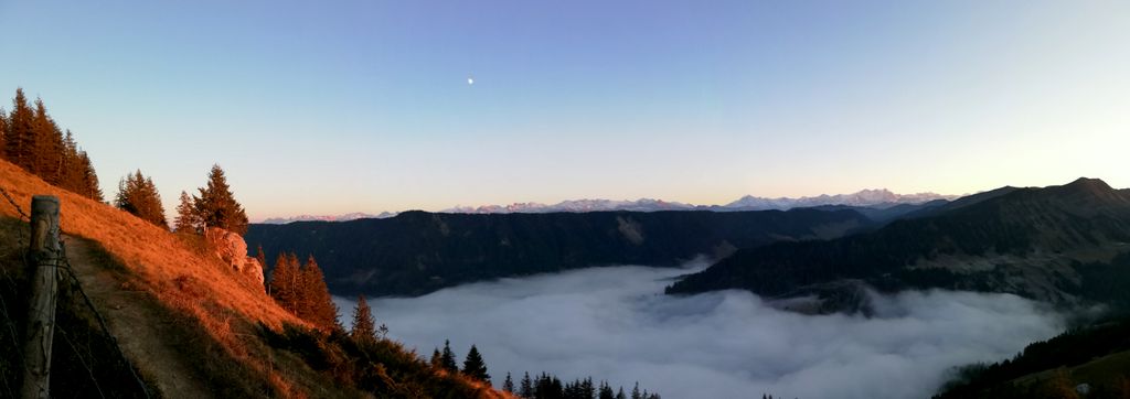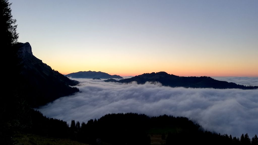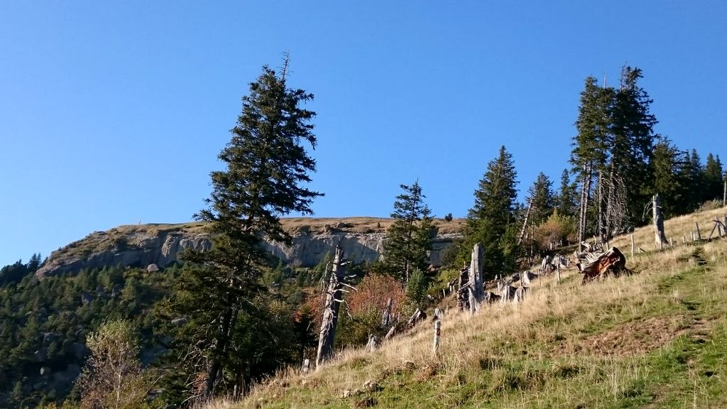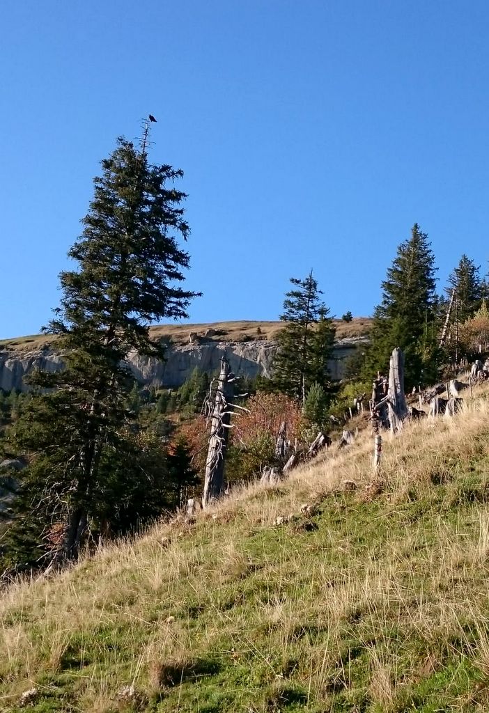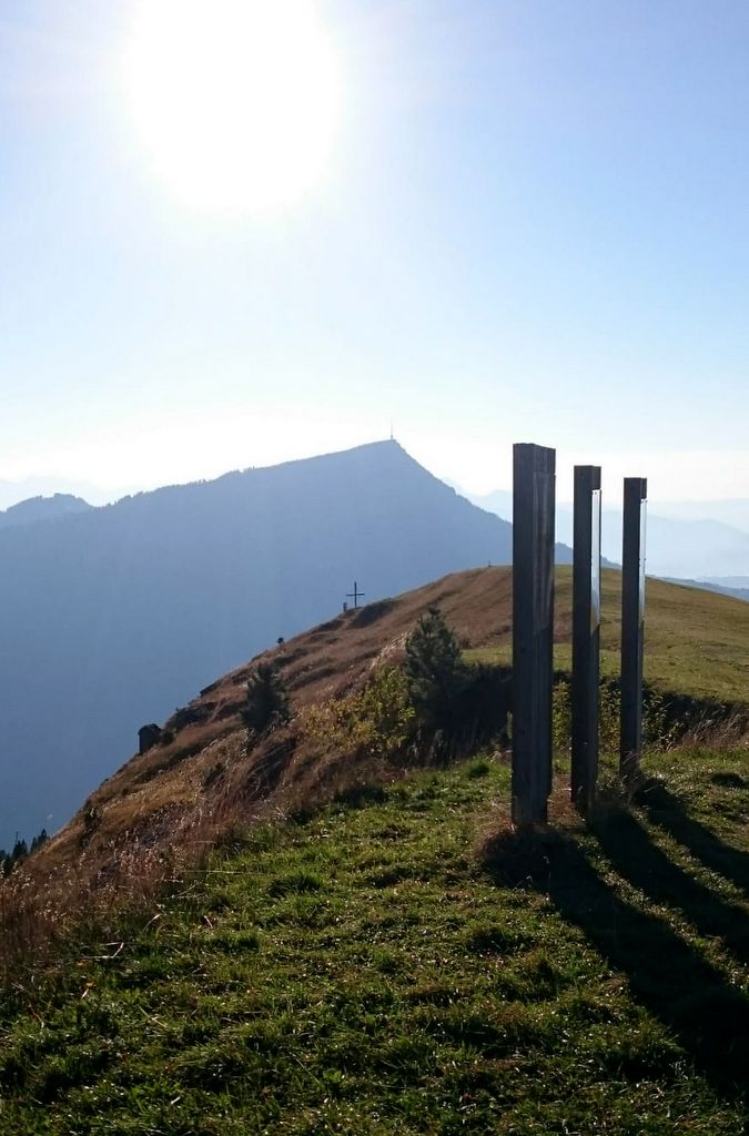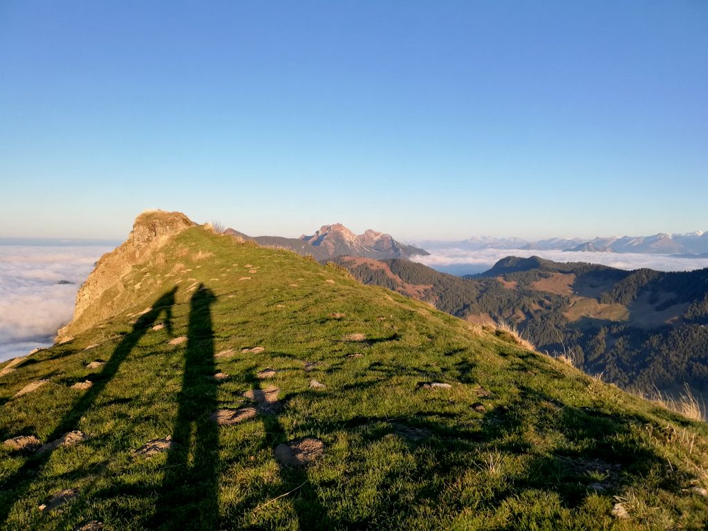 Am 17. November plante ich nochmals den 90Min. Marsch auf den Schimbrig (1’815 m) und als Hugo von meinem Vorhaben „Wind“ bekam, gesellte er sich an meine Seite. Aus dem dicken Nebel entflohen wir an diesem Tag in die Sonne mit prächtig blauem Himmel. Die Luft war bissig kalt, so dass wir uns entschlossen, im Frühling wieder hierher zurück zu kehren… um dann länger zu bleiben. ;-]