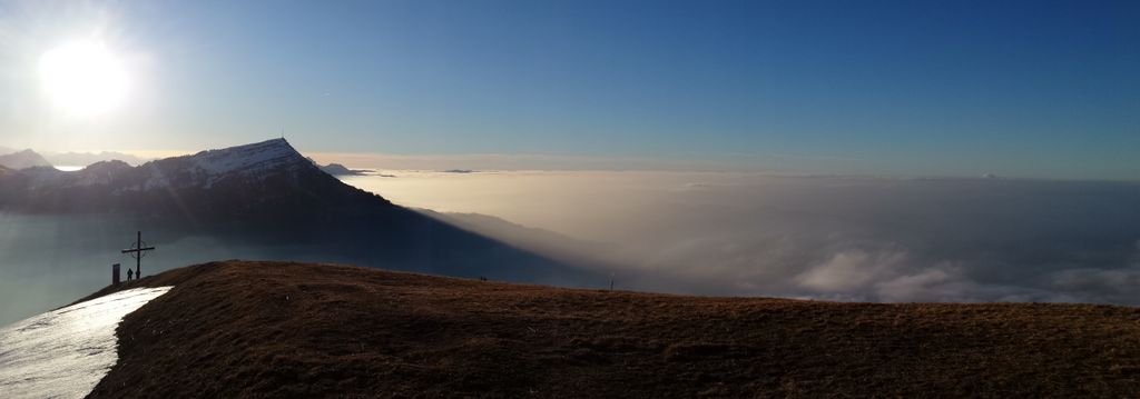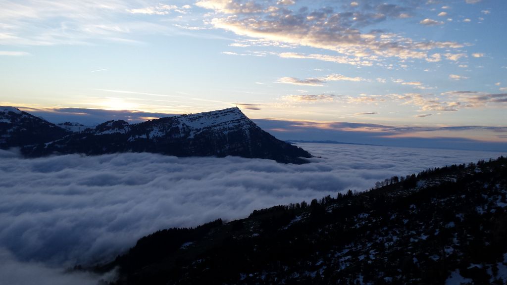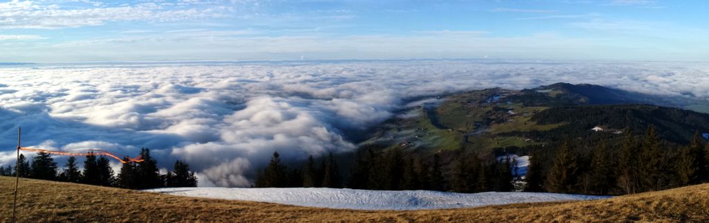 Bereits mehrere Male war ich seit Silvester auf dem Gnipen fliegen; und jedesmal war eine andere, spannende Stimmung dort oben. Am ersten Samstag im neuen Jahr überraschten mich die vielen umgestürzten Bäume (sehr massiv) von den sehr starken Stürmen Ende 2017. >>Wenn man bedenkt, diese Bäume waren unter Stürmen gross geworden… Ich fand stets unterschiedliche und spannende Wettersituationen vor. Einmal den unangemeldeten, starken Föhn mit traumhaftem Nebelmeer auf ca. 1’000m.Ü.M…, ein nächstes Mal schwacher Nordwind und leichte Thermik… bedeutet Fliegen ohne Handschuhe; dann wieder frisch eingeschneit mit geradlinigem Westwind… usw.. Jedes mal war es anders und somit interessant, die unbekannten Situationen zu fliegen.