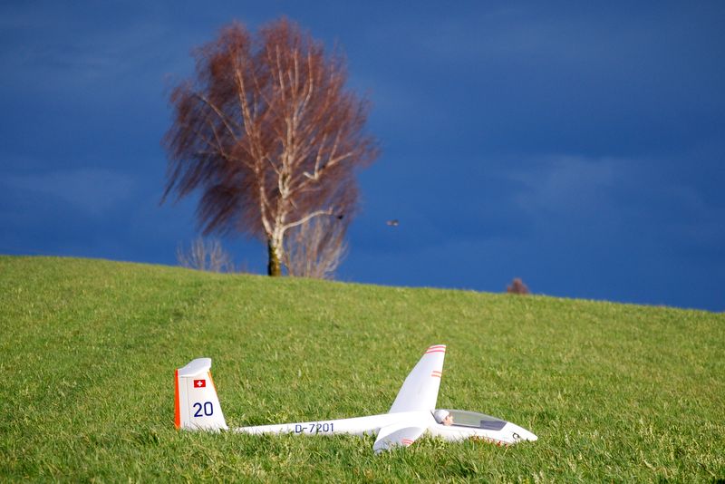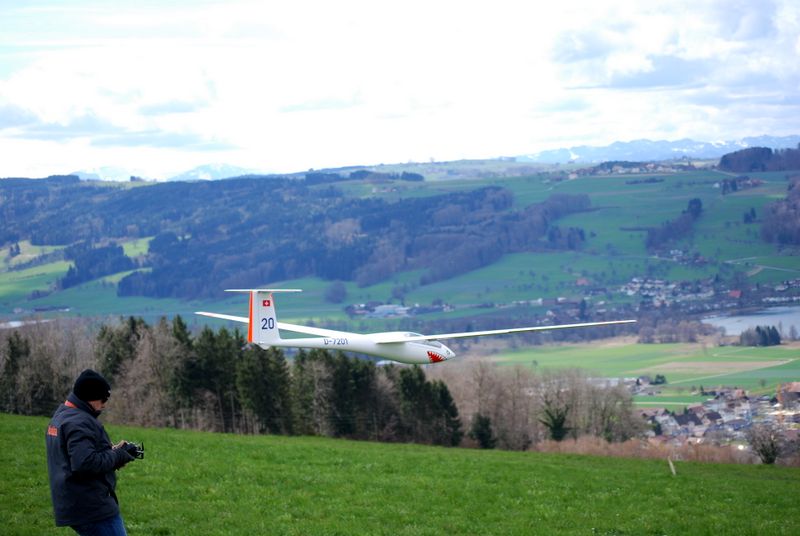 So flog ich diese Voll-GFK-Ripo-ASW-20L beim Erstflug sogleich 75min. im Hangwind mit einer samtweichen Landung an dessen Ende. Am vergangenen Freitag und Samstag flog ich sogar bereits über 4Std. an unserem Haushang oberhalb Aesch – einfach genial. Laut Berechnung der beiden Akkus (Restkapazität), könnte ich noch so einiges länger mit dem Schätzchen in der Luft verbringen, was ein gutes und sicheres Gefühl ergibt.