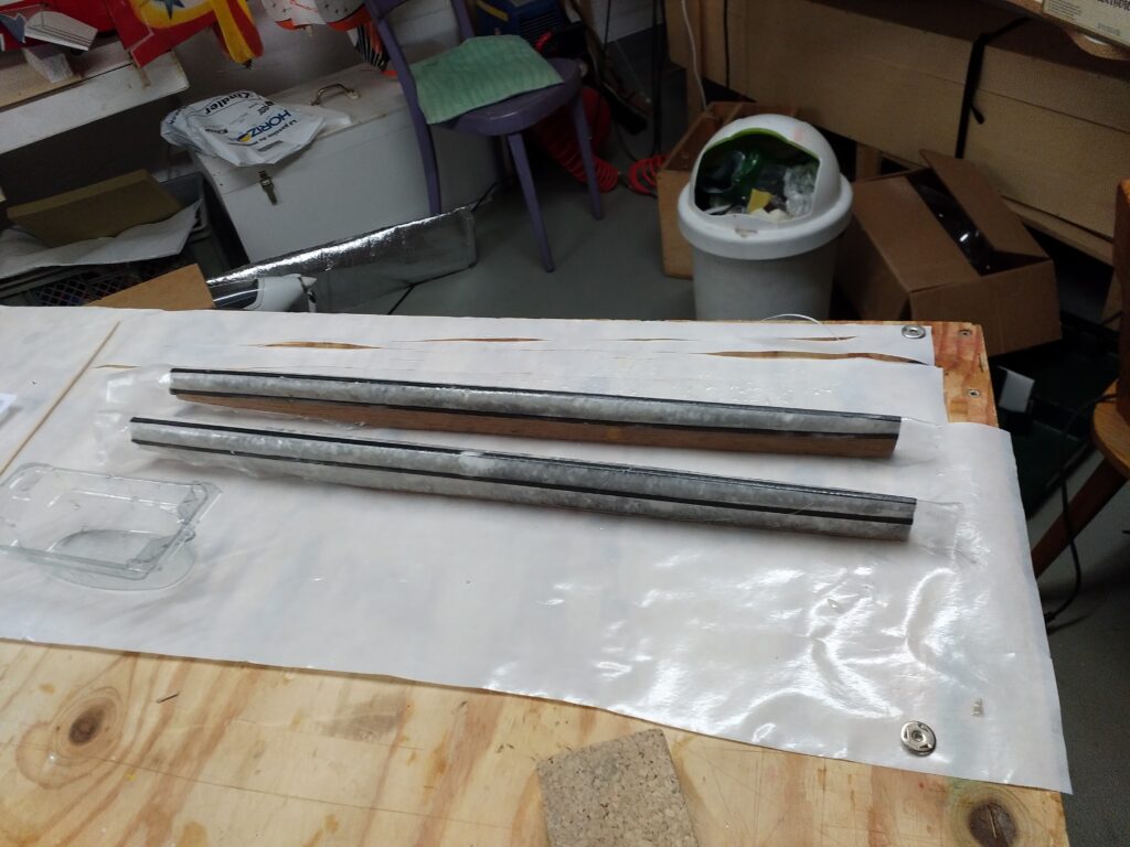 Die Vorder- und Endkanten werden zurechtgeschliffen und beim Zusammenkleben mit Epoxy gleich mit Glasfasern verstärkt.