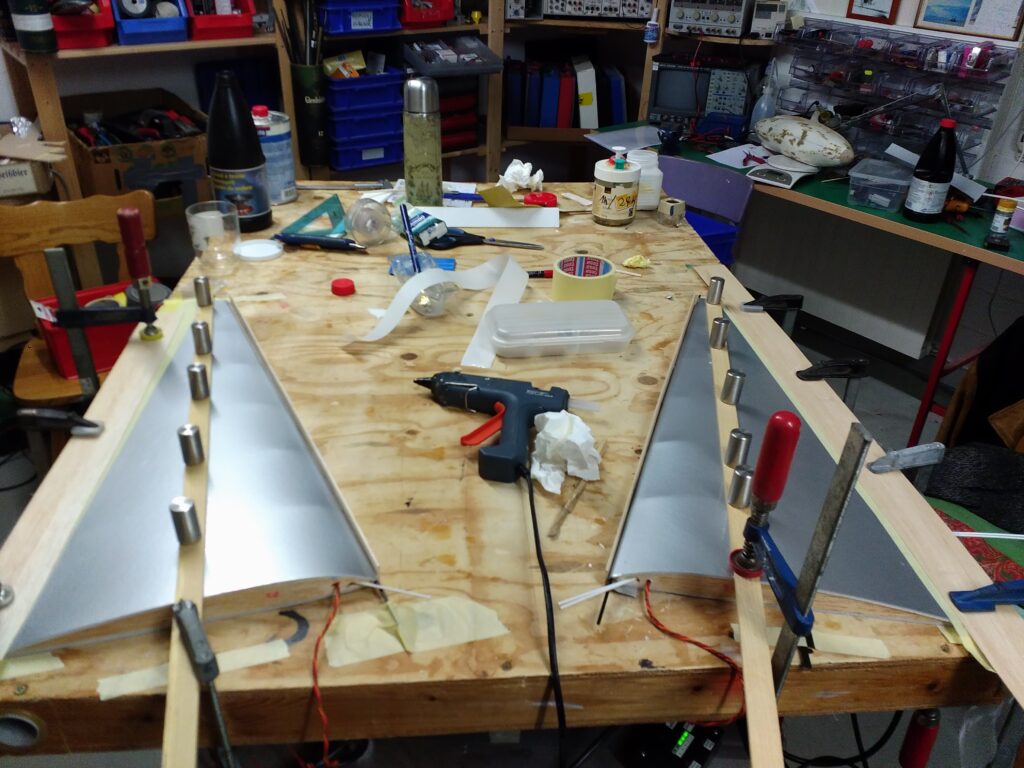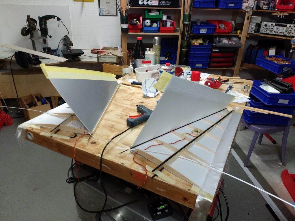 Anschliessend werden noch die Ruder ausgeschnitten, Servos eingebaut, Wingtips angeklebt und bespannt und dann ist der Flügel eigentlich schon weitgehend fertig.