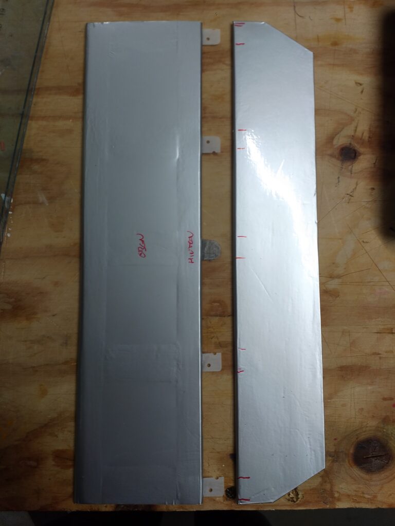 Depron-Rippenbauweise. Platten aus 3mm Depron (Extrudiertes Polystyrol) werden dabei auf der Aussenseite zuerst mit Orastick-Folie beklebt.