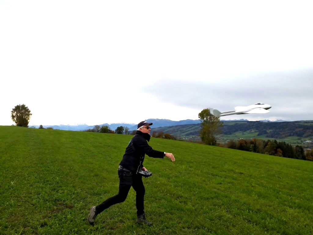 Letztendlich hat mein Vampire nach ein paar Probewürfen auf dem Platz aber schon beim PSS Erstsegelflug so gut performt, dass ich beschlossen habe, das Baby ausschliesslich im PSS Modus ganz ohne jegliche Motorisierung zu betreiben.