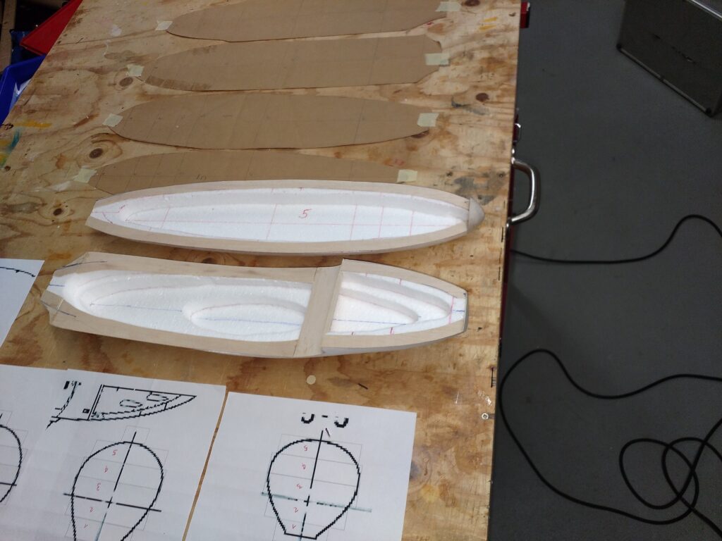 Mit dem Rumpf habe ich dann auch gleich angefangen. Gefertigt aus 20mm Styropor Schichten in Profil-Relief-Bauweise: