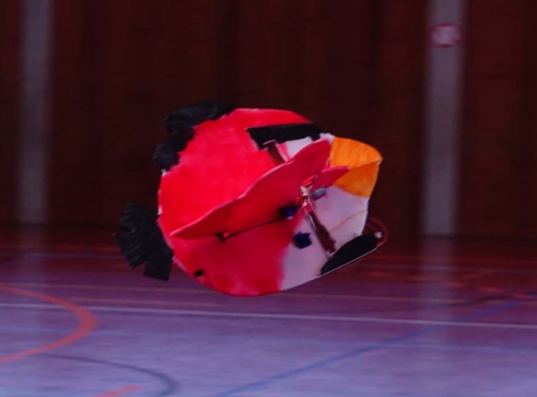 Urs#1 (heute waren da deren zwei) brachte einen Angry Bird (Aka Moorhuhn) Marke Eigenbau mit. Diesen bewegte er dank Starthilfe von Beat #1 (heute waren da deren drei) bei vollster Konzentration durch die Halle: