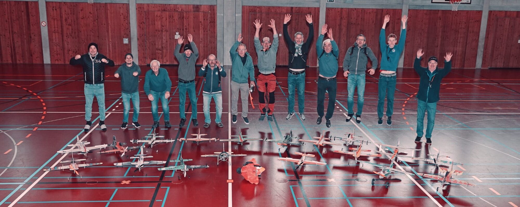 Man hätte es nicht geglaubt, aber man kanns immer noch toppen! Wieder mehr Piloten und eine Rekordzahl von Flugzeugen waren heute vor Ort; so viele hat die Badweiherturnhalle noch nie gesehen: