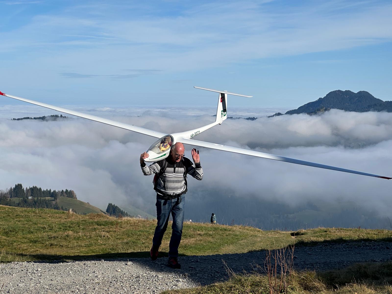 Ich war am 11.11.24 mit den Hangflugfreunden ein letztes mal im 2024 auf dem Heiligkreuz zum Alpinsegeln.