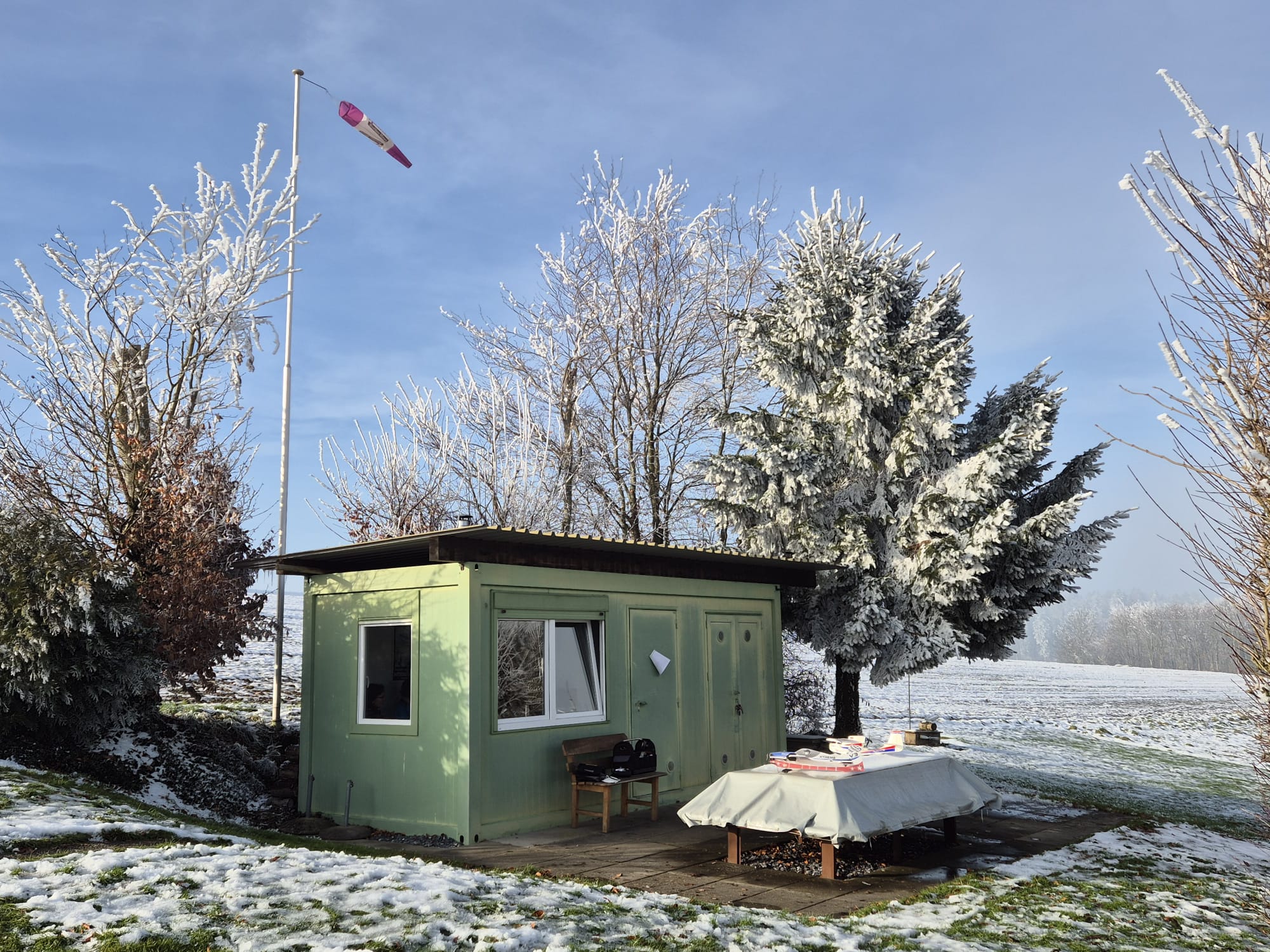 Das Wetter war grenzwertig im wahrsten Sinne: Der Platz befand sich genau an der Nebelgrenze. Zuweilen konnte bei Sonne und blauem Himmel geflogen werden, im nächsten Moment konnte aber Nebel aus dem Tal auftauchen, und IFR Landung und anschliessend Kaffee und Kuchen in der warmen Hütte war dann angesagt…