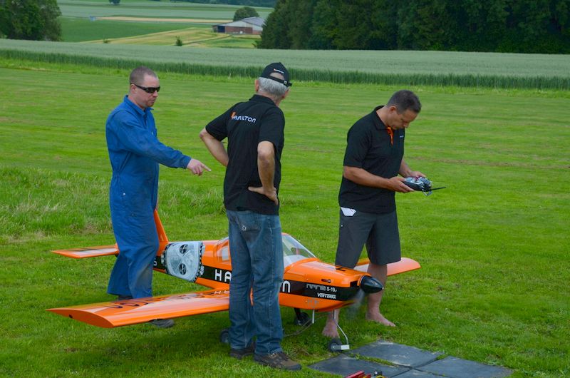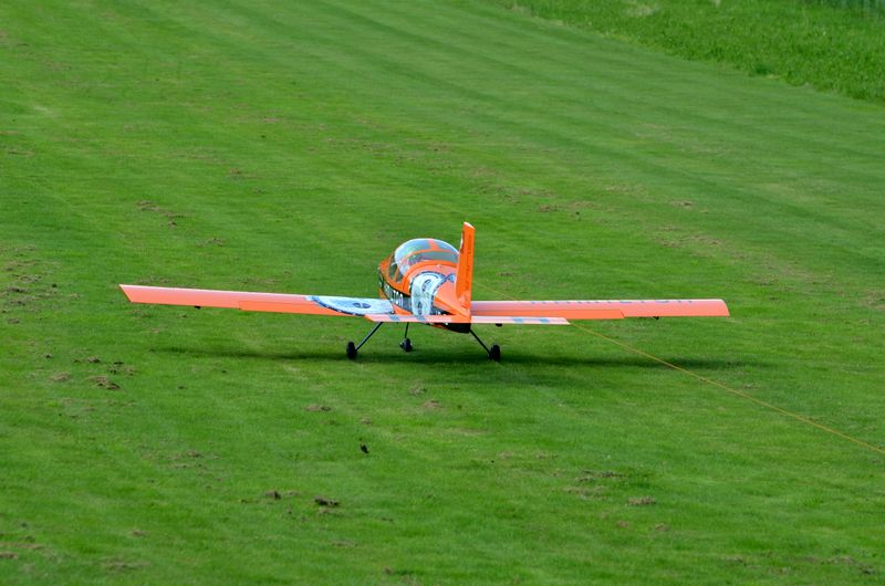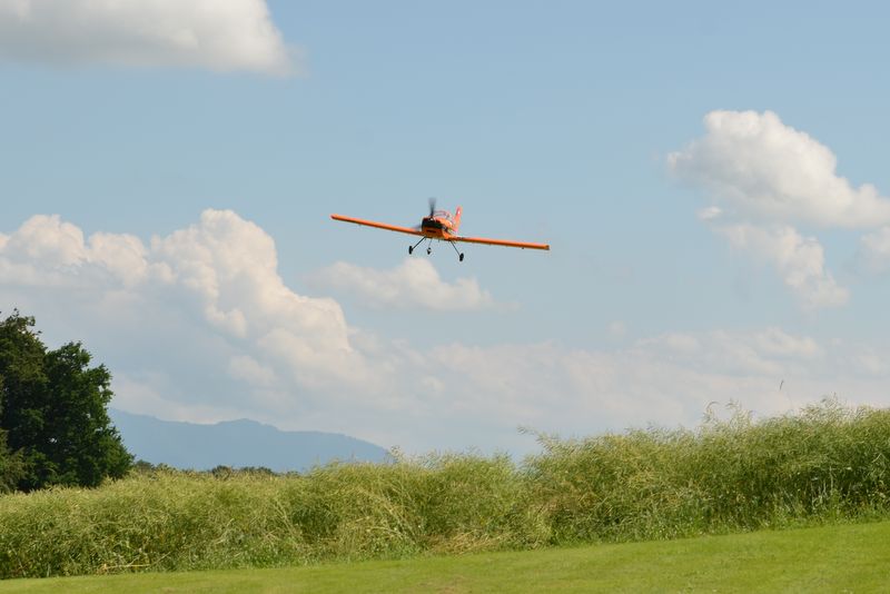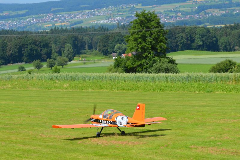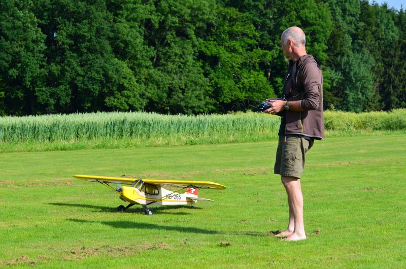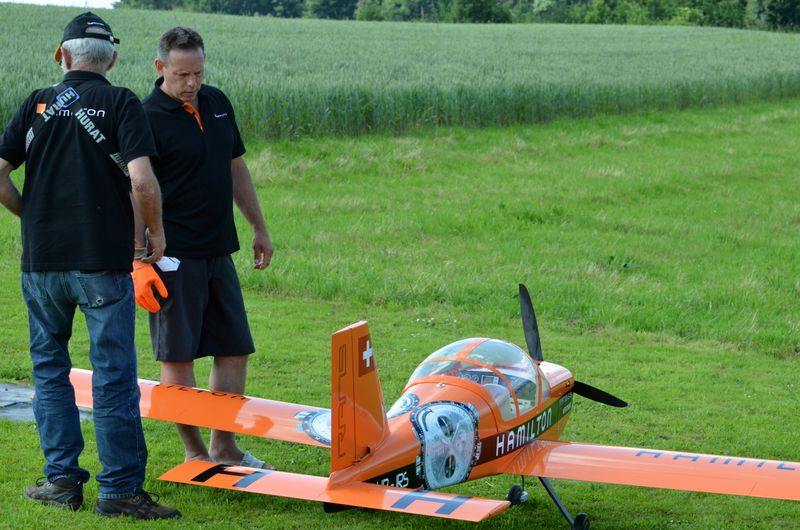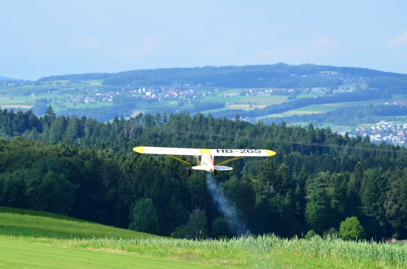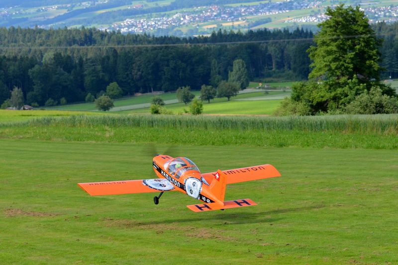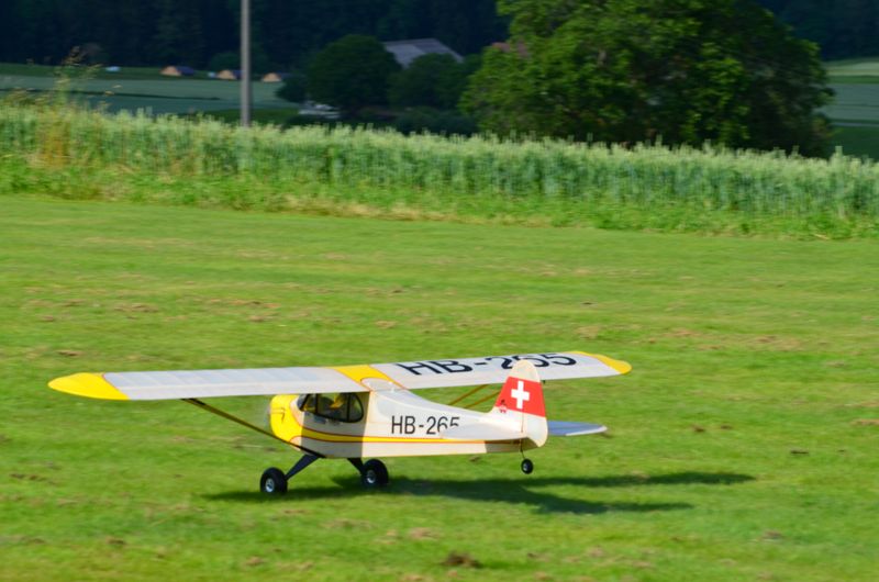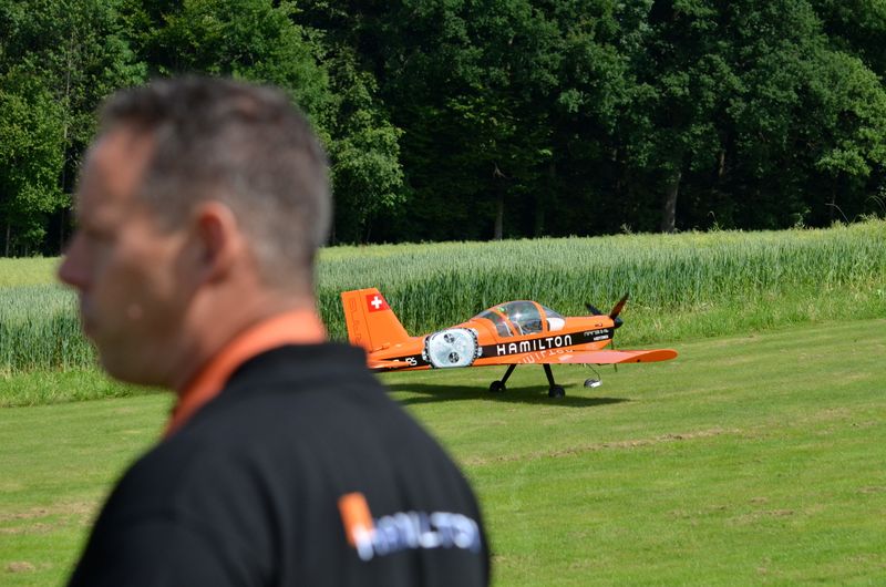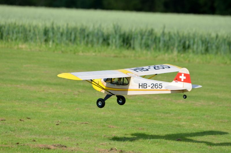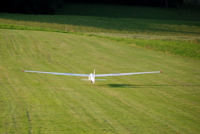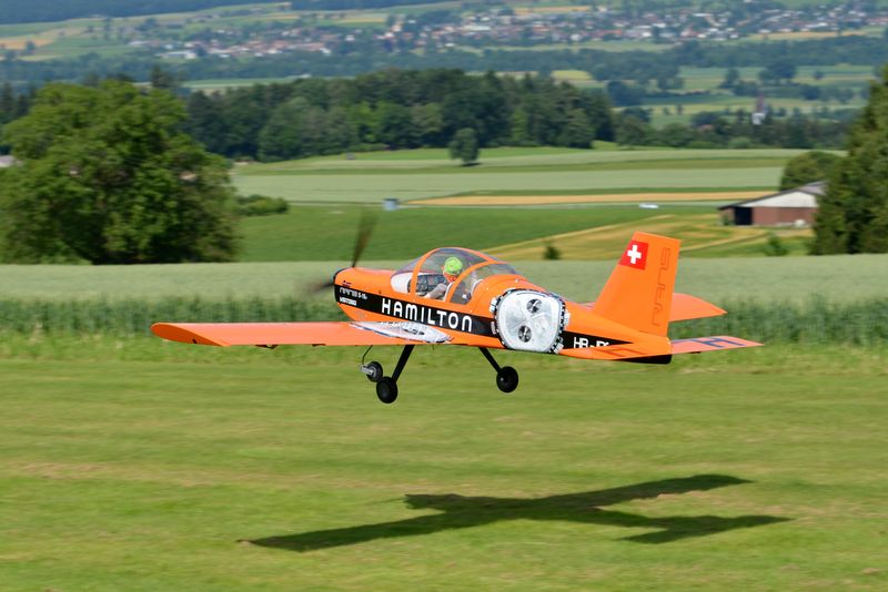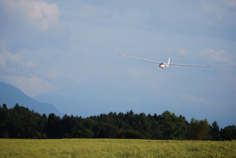 Und schliesslich ging es schon ans Werk; Ruderdirektion gecheckt, Motor an, ein guter Schubs… und bereits flog die Schöne gen Himmel. Es musste wenig getrimmt werden und die Alpina machte ihrem Namen alle Ehre! Sie flog ‚wie am ersten Tag’… und wollte trotz der mässigen Thermik fast nicht mehr runter. Der Pilot und die Zuschauer… nur noch begeistert. Sooo soll es sein, so macht’s Spass!