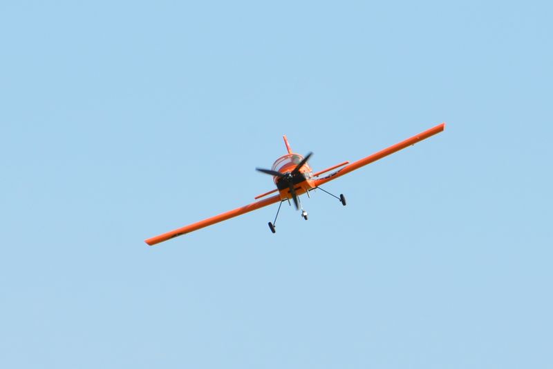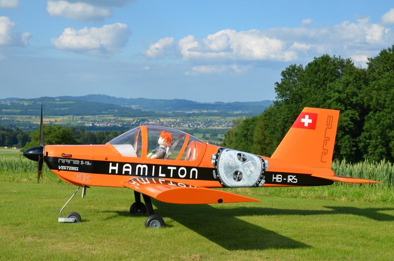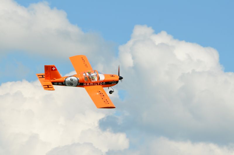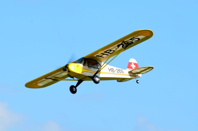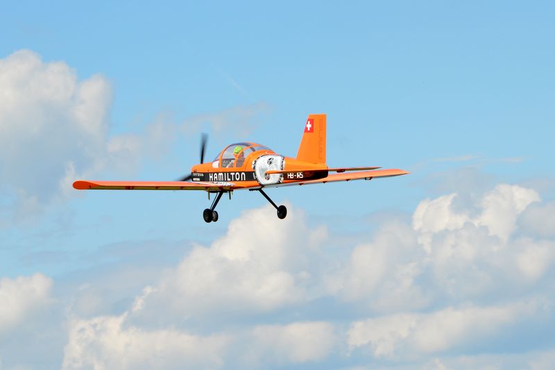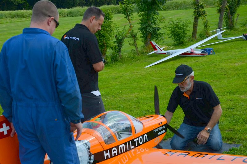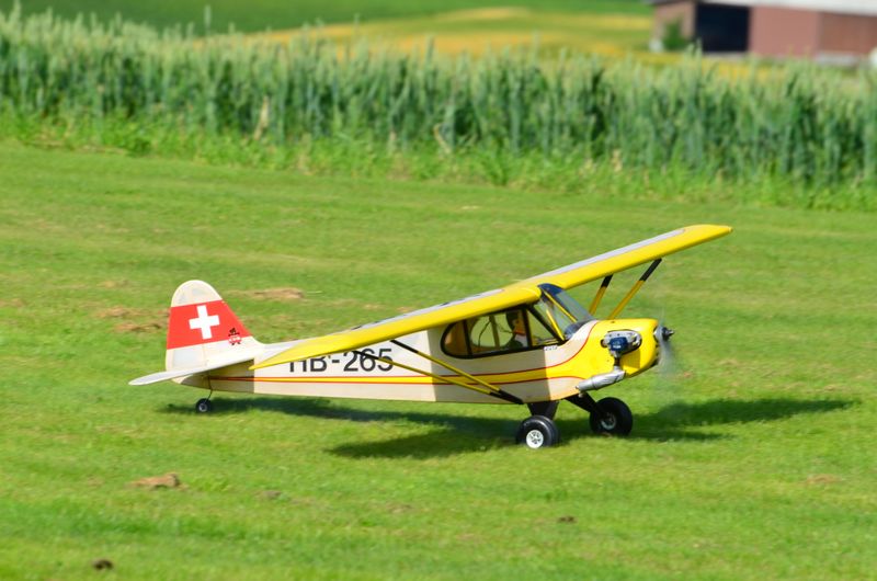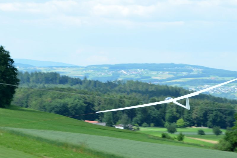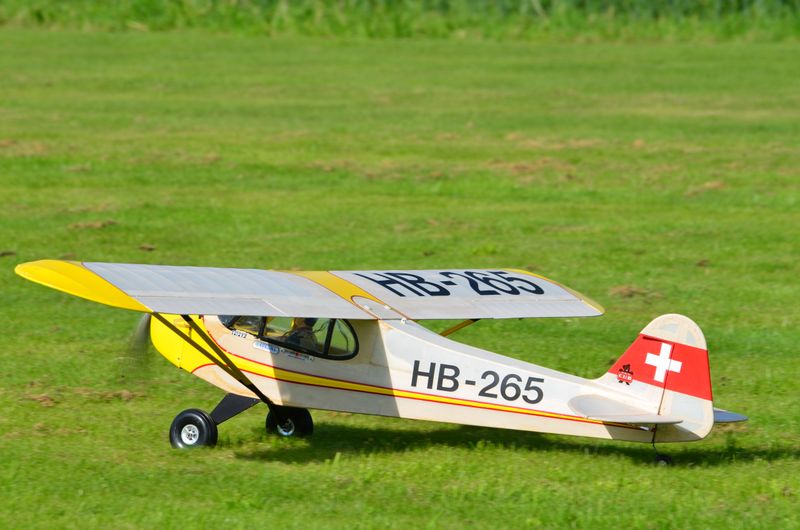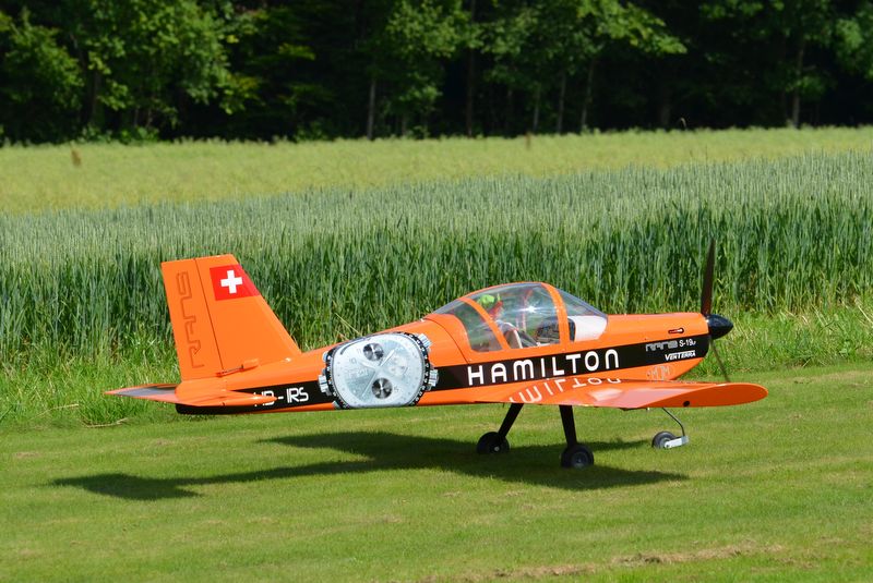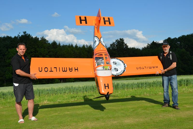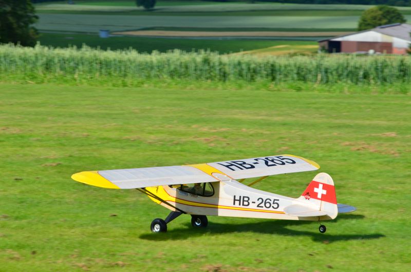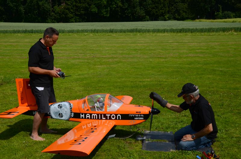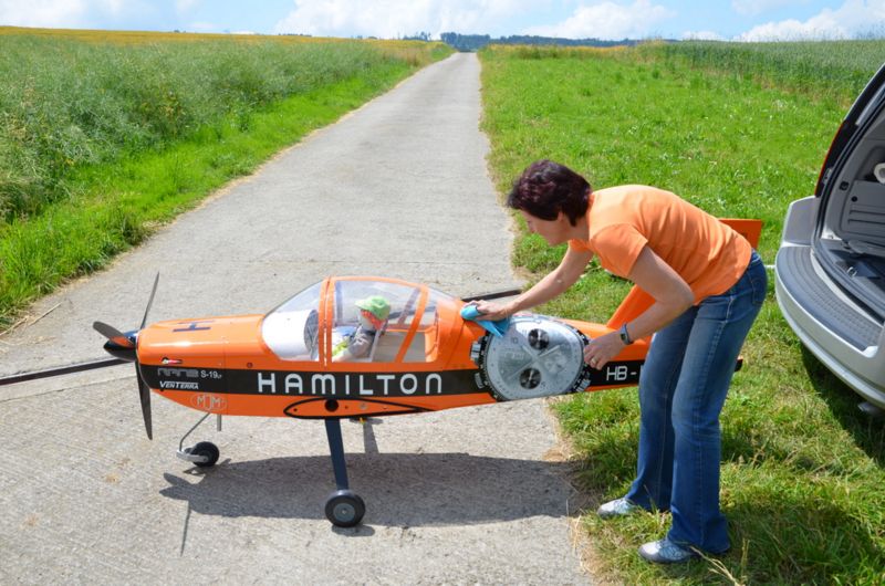 Und schliesslich ging es schon ans Werk; Ruderdirektion gecheckt, Motor an, ein guter Schubs… und bereits flog die Schöne gen Himmel. Es musste wenig getrimmt werden und die Alpina machte ihrem Namen alle Ehre! Sie flog ‚wie am ersten Tag’… und wollte trotz der mässigen Thermik fast nicht mehr runter. Der Pilot und die Zuschauer… nur noch begeistert. Sooo soll es sein, so macht’s Spass!
