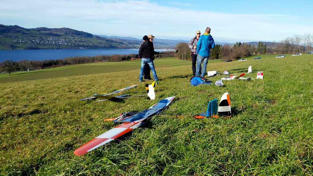 gibt es auch… Mario hat sich einen kleinen Hangflitzer namens „Gurke“ mit Flächensteuerung gebaut; sehr agil und wendig! Fertsch hat sich eine Alpina3001 bei TUN ergattert; die Wartezeiten sind mittlerweile auch hier, ziemlich lange. Hugo’s neuer Mistral 4300 von Windwings ist bereits flügge; ebenso Dieter’s Zuwachs an seinen Highlight’s. Mein Alto von Girmodell fliegt einfach nur hervorragend; dieser sollte sich beim nächsten Zäziwiler beweisen. Weiter im Bau befinden sich: PC-21, Kruk, ASW-20, Discus, ASG-29, Venom, ein Oldtimer-Segler.
