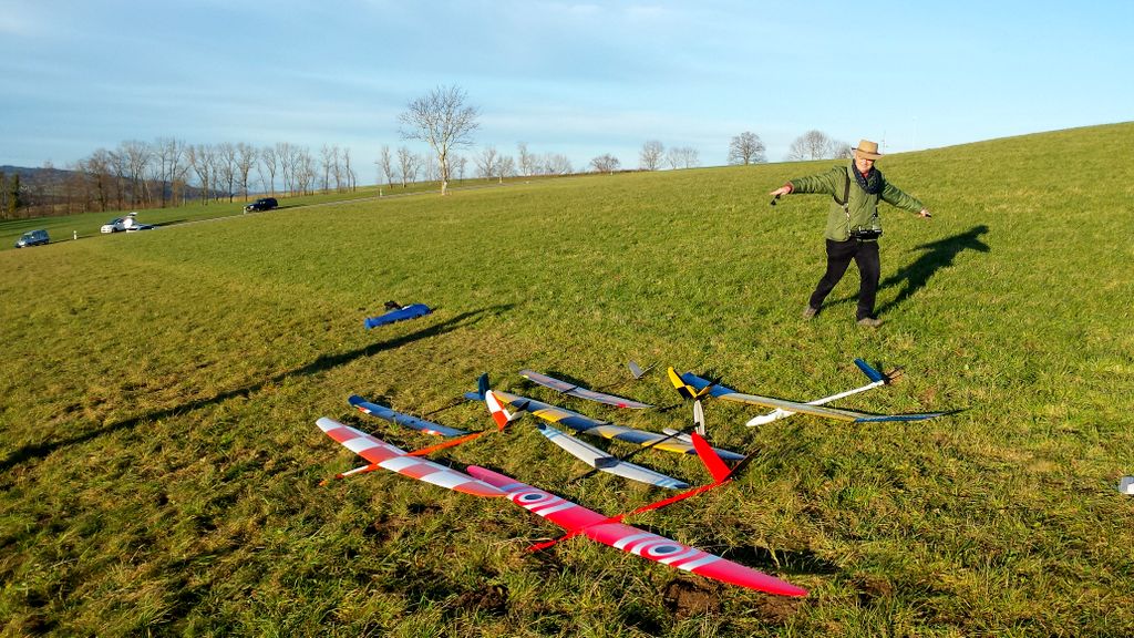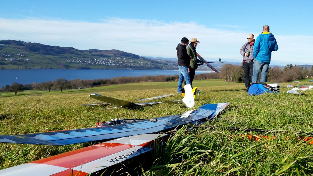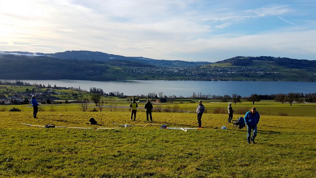 Schöner Hangflug wurde vor-, während- und auch nach den Feiertagen rund um den Jahreswechsel betrieben. Wir fanden sämtliche Bedingungen vor; von absolutem Leichtwind, bei dem sich gerade noch einen DLG an der Hangkante halten konnte… bis zu Sturmwind mit Böen weit über der 100 km/h Marke. Mit Südeinfluss manchmal ziemlich bockig, bis thermisch äusserst gut zu fliegen. So sind wir motiviert, das 2018 fliegerisch in Angriff zu nehmen.