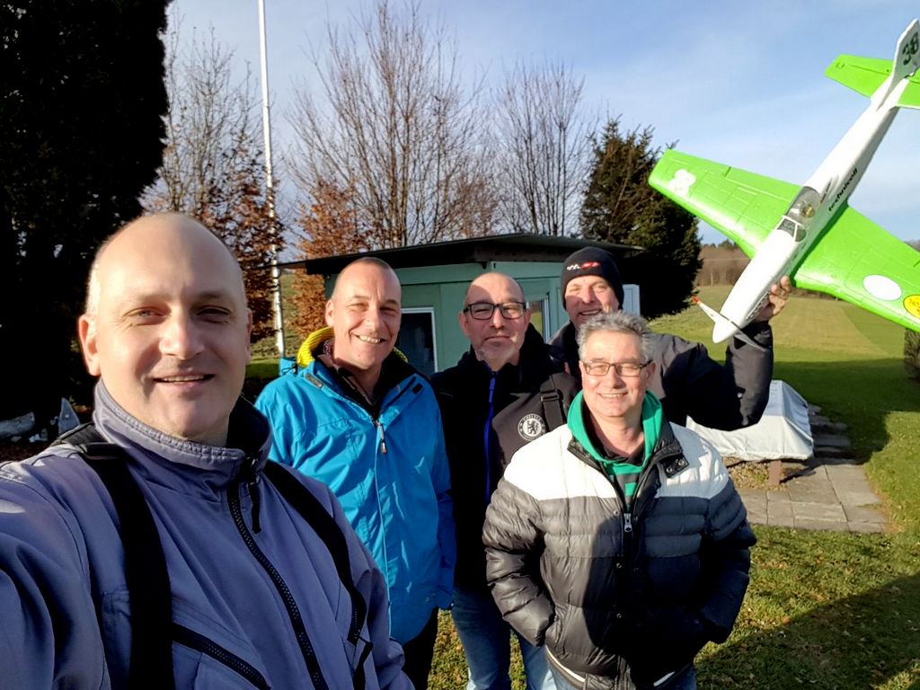 Nach ca. 90-Westwind-Flugminuten packte ich wieder ein und transferierte über den Lindenberg nach Isenbergschwil auf unseren Flugplatz. Dort angekommen waren erst Pasci und Fertsch anwesend… „hoffentlich kommen da noch ein paar…?!“ …dachte ich so bei mir. Die Wasserflugzeuge konnten wir mangels Schnee getrost zu Hause lassen; dafür kamen wieder einmal unsere guten alten Parkzone-Fighter’s zum Einsatz! Je reifer die Zeit, umso mehr tröpfelten weitere Mitglieder bei uns in der beheizten Hütte ein. Schliesslich fand ein reger Flugbetrieb statt, wobei der Eine oder andere Besucher staunend stehen blieb und interessiert das Geschehen in der Luft verfolgte. Solch ein Luftkampf mit mehreren Modellen kann ordentlich Aufmerksamkeit bewirken… Bald wieder ratterte die Kaffeemaschine; feiner selbstgemachter Lebkuchen (danke Monika!) reicherte das Menue-Angebot ab. Trotz der ziemlich „bescheidenen“ Teilnehmerzahl durften wir einen überaus gemütlichen und geselligen Neujahrsflugtag erleben.