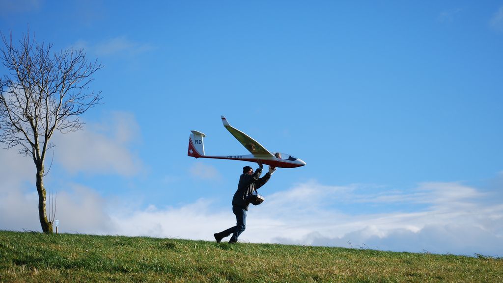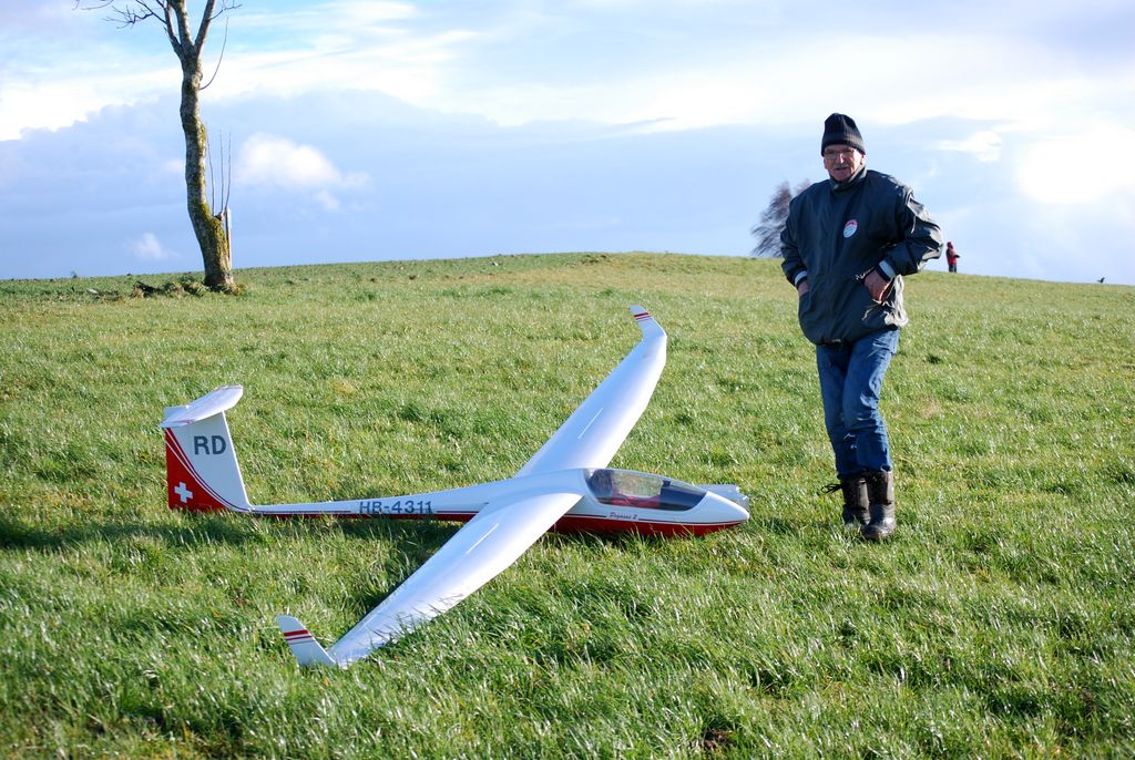 die vergangenen, stürmischen Westwindtage liessen sich gut zum Hangfliegen nutzen; man musste lediglich den Niederschlagsradar etwas im Auge behalten und die regenfreien Lücken erwischen… Solche Momente boten sogar gutes thermisches Steigen und wenn man auf der „Welle“ angelangt war, konnte man problemlos oben bleiben. Wem’s zu kalt ist in dieser Jahreszeit, dem empfehle ich einen guten Senderschutz von ‚Glooramsler‘ und zu Kopfbedeckungen à la „American-Hunting-Style“.