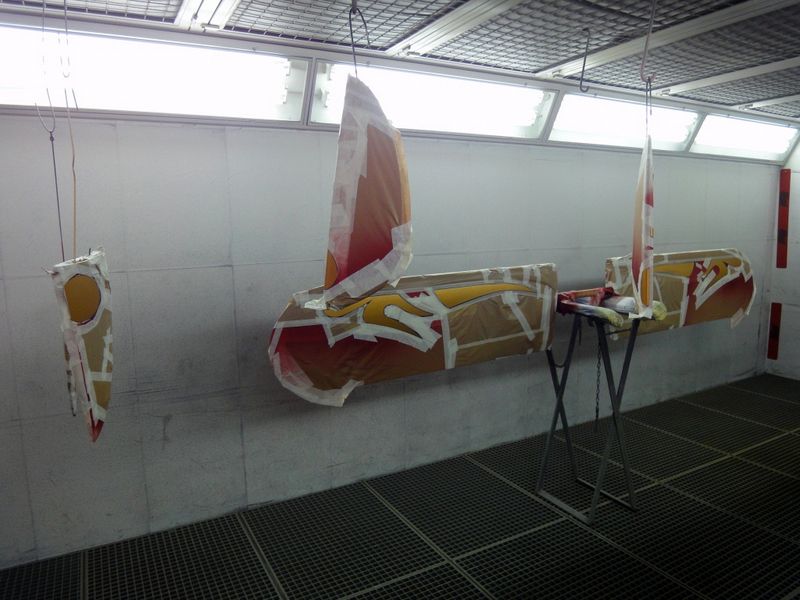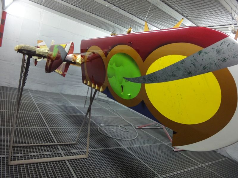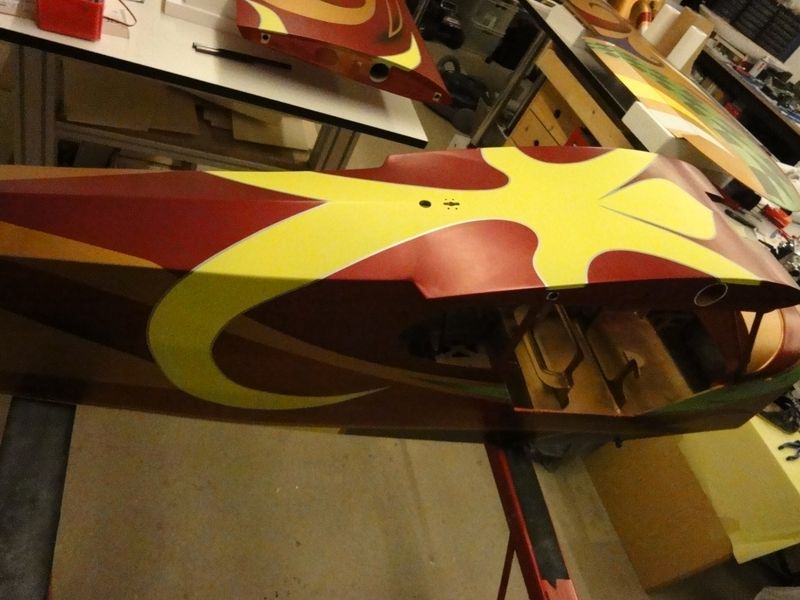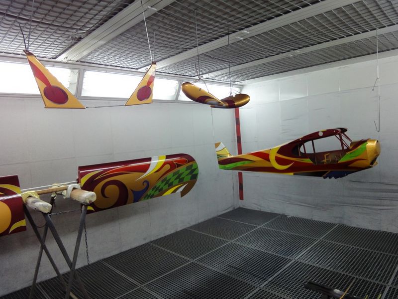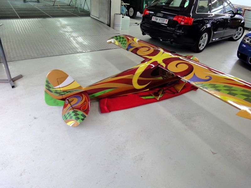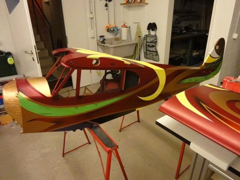 Eine Arbeit von fast 3 Monaten neigt sich dem Ende zu. Begonnen hat alles kurz vor Weihnachten mit der goldenen Farbe. Ein Ende fand es diesen Dienstagabend mit dem Klarlackauftrag. Der Klarlack wurde mit einem Glimmereffekt ergänzt. Wer kennt sie nicht die Autos der „Tütschibahn mit ihren glimmernden Farben“ und genau so glimmert nun die Piper. Klar ist es nicht jedermann Sache ein wildes Design auf einem solchen Flugzeug, aber was soll‘s. Jetzt heisst es die Elektronik einbauen und ab in die Luft mit der Kiste, YEAHHHH!