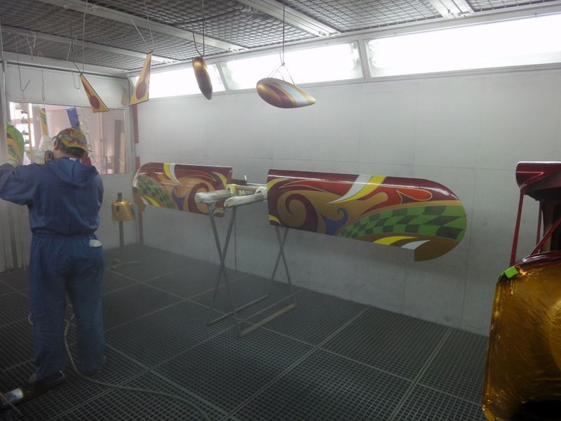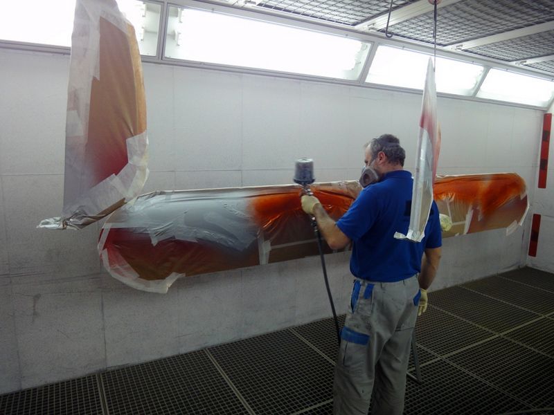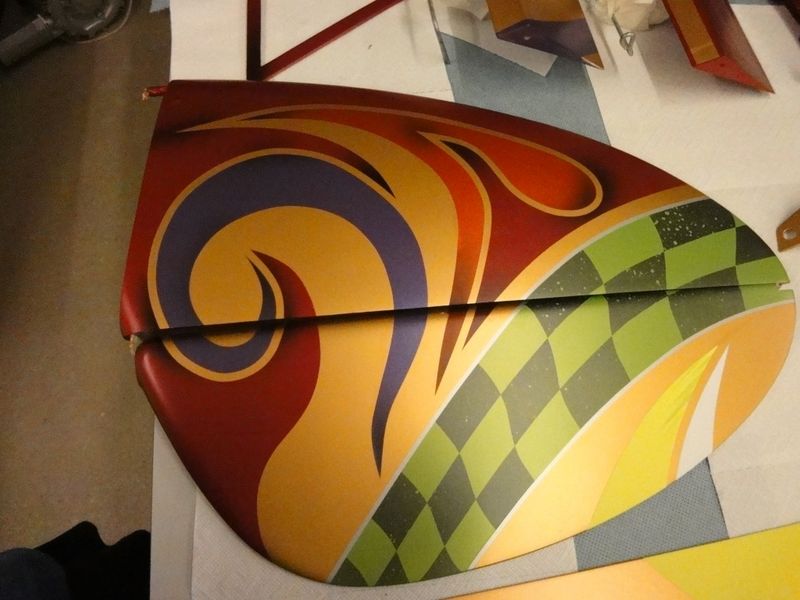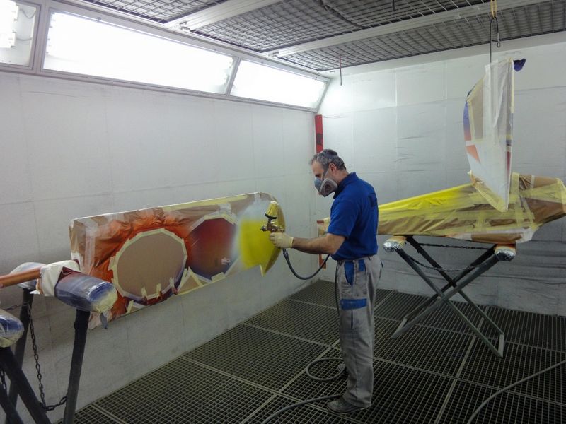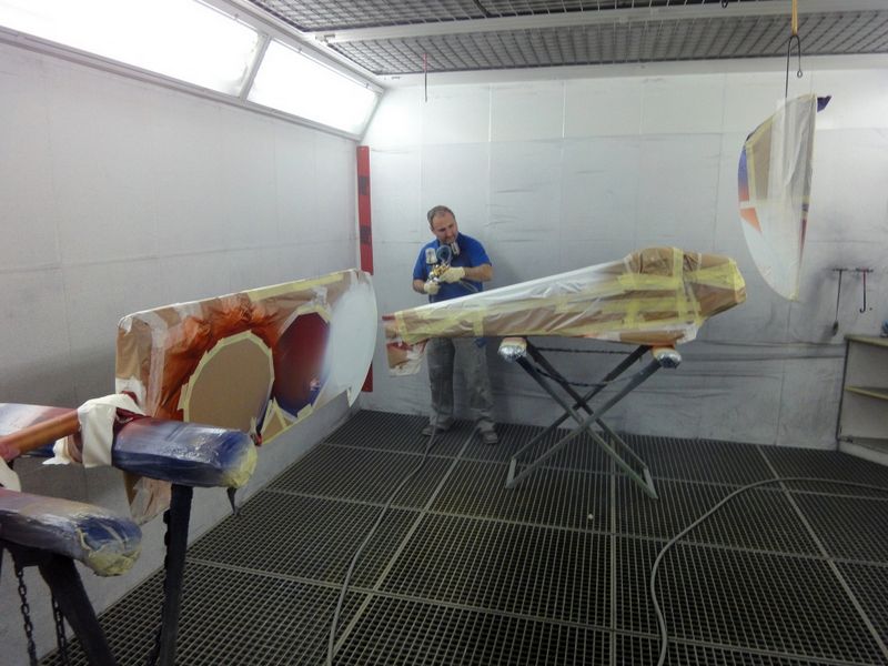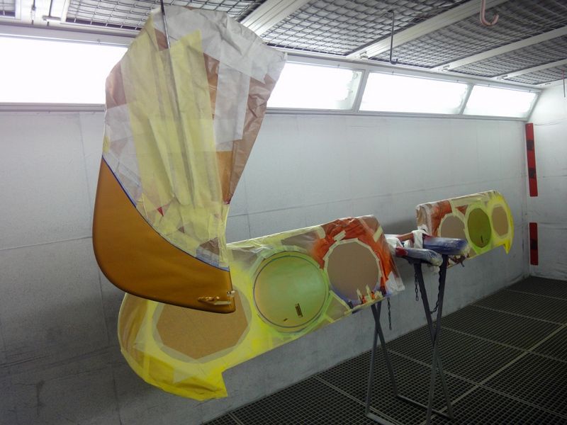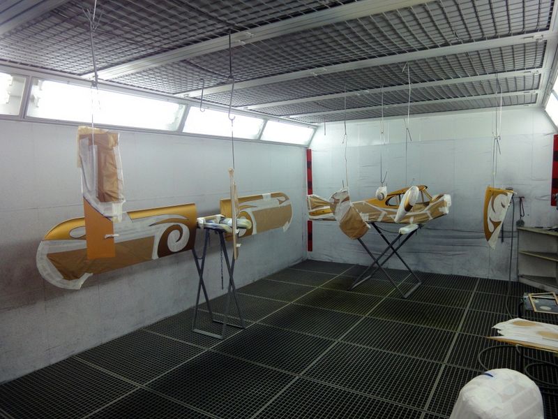 Eine Arbeit von fast 3 Monaten neigt sich dem Ende zu. Begonnen hat alles kurz vor Weihnachten mit der goldenen Farbe. Ein Ende fand es diesen Dienstagabend mit dem Klarlackauftrag. Der Klarlack wurde mit einem Glimmereffekt ergänzt. Wer kennt sie nicht die Autos der „Tütschibahn mit ihren glimmernden Farben“ und genau so glimmert nun die Piper. Klar ist es nicht jedermann Sache ein wildes Design auf einem solchen Flugzeug, aber was soll‘s. Jetzt heisst es die Elektronik einbauen und ab in die Luft mit der Kiste, YEAHHHH!