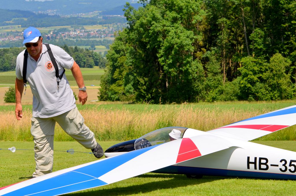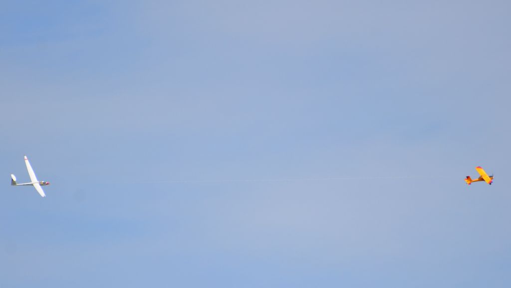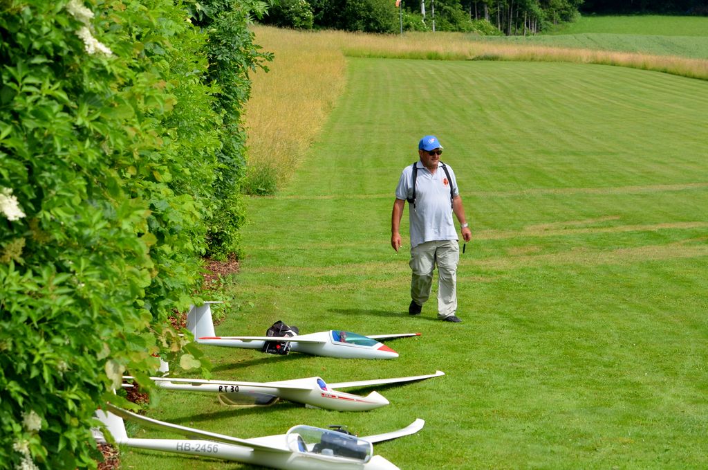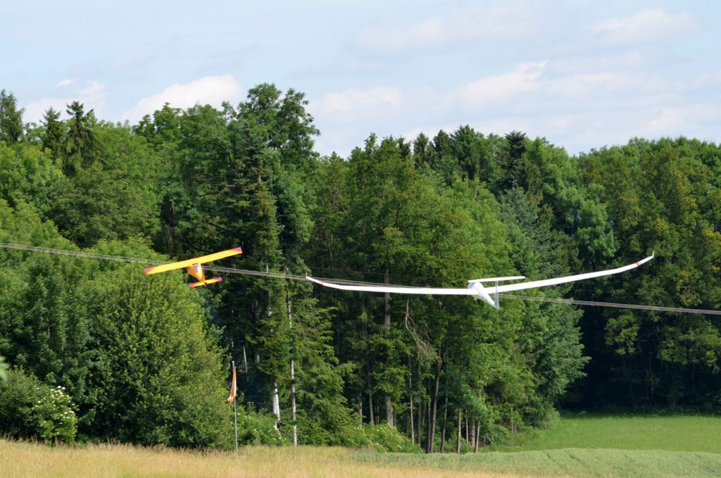 Einigen erfüllte sich der lang ersehnte Wunsch, einmal auf dem Platz zu übernachten. Sie wurden, wie abgemacht, am nächsten Morgen von Leo geweckt, welcher auch gleich ein Frühstück mitbrachte. Am Sonntag war der Schlepptag mit der Hangfluggruppe angesagt. Leider war das Interesse sehr gering; es kamen gerade mal 2 Piloten. Trotzdem hatten wir einen schönen Tag mit super Schlepp’s.