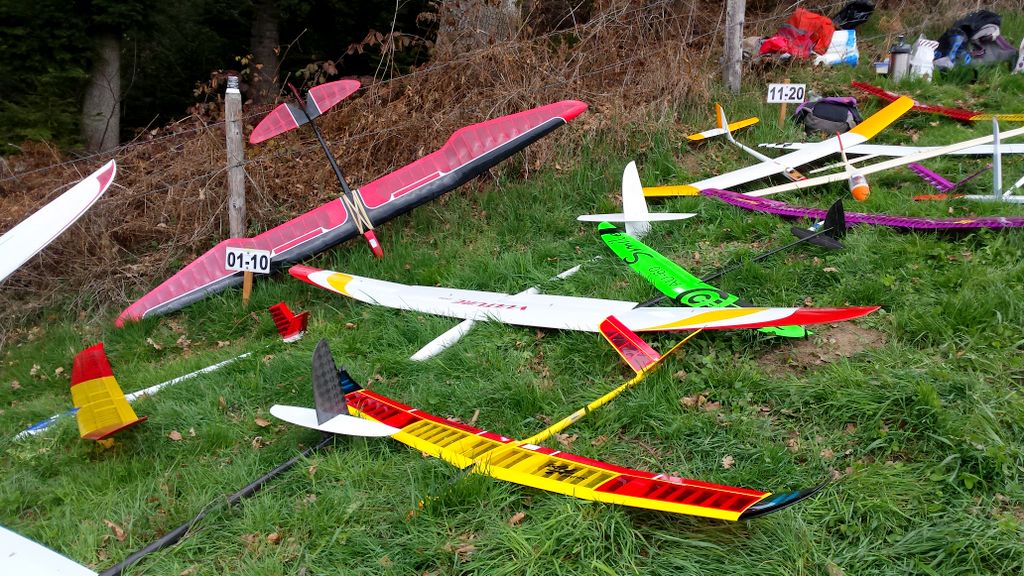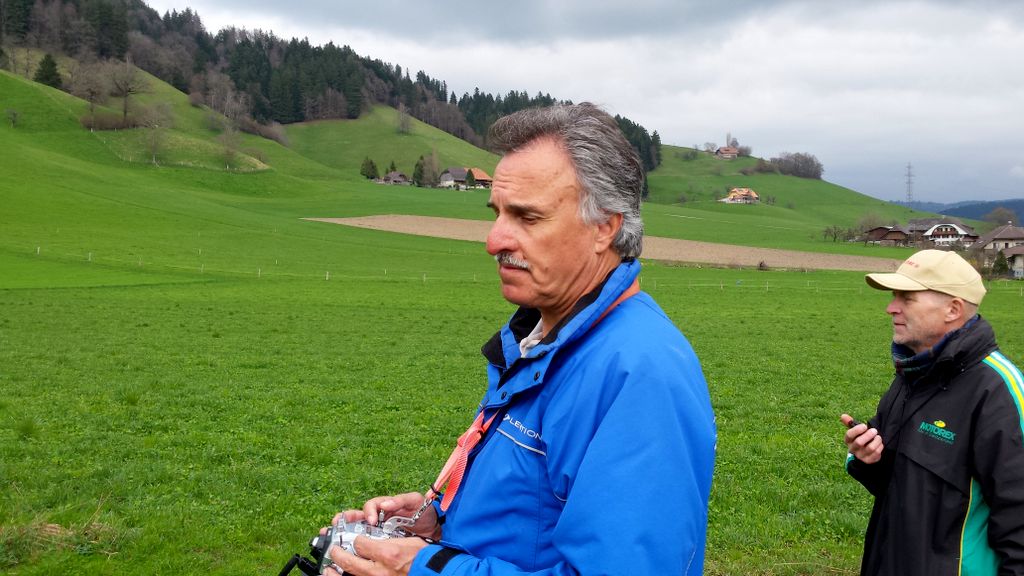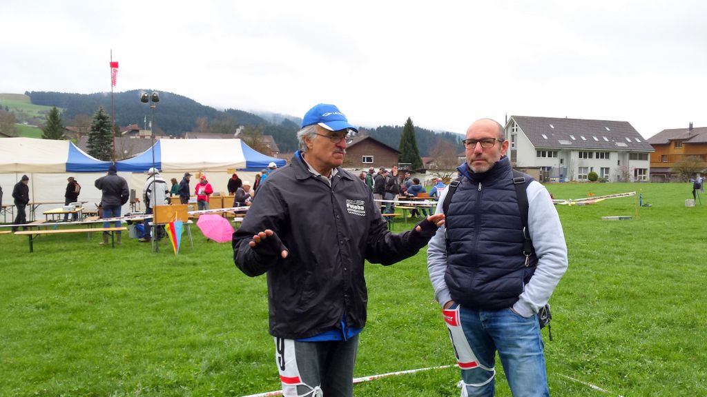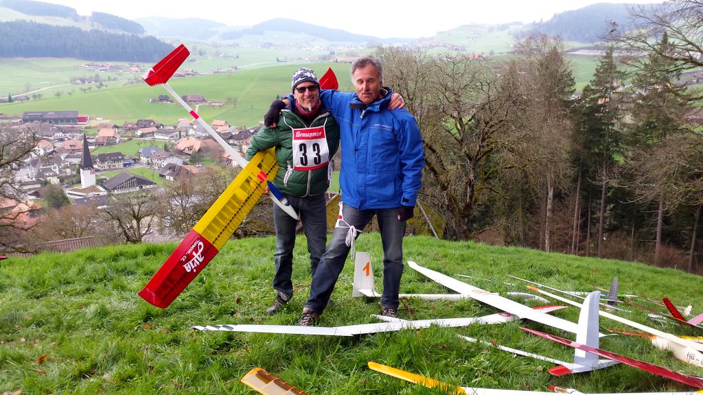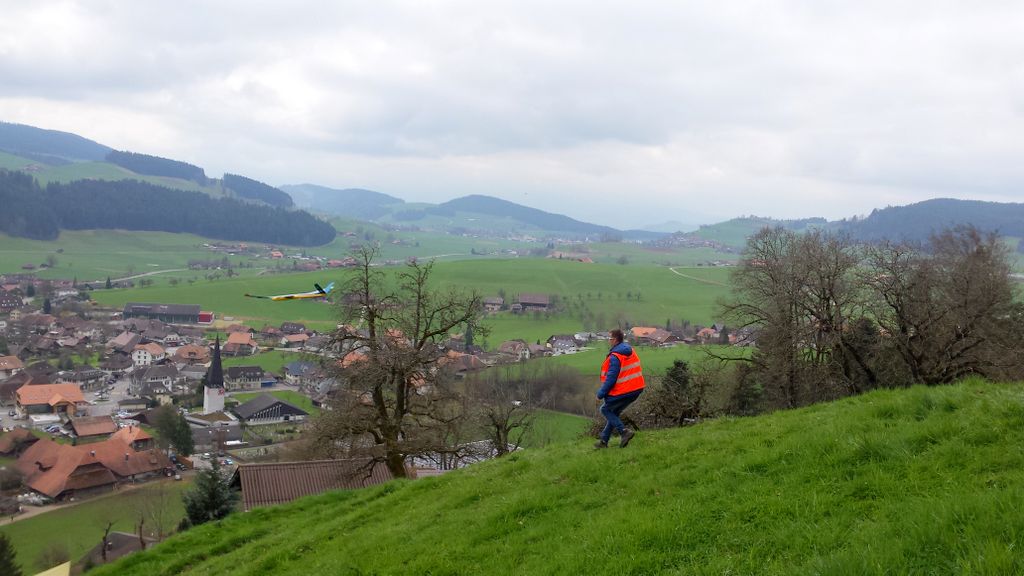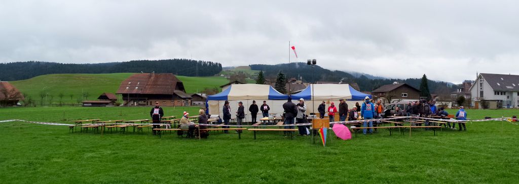 Die vorhergesagten Wetterprognosen trafen punktgenau ein. Auf der ganzen Anfahrt waren die Strassen trocken; doch genau – kurz vor Zäziwil, fing es zu nieseln an… na suuper. Somit wurde der Start zum ersten Mal etwas vertagt. Kurz nach 10Uhr wurde es zusehends heller sowie trockener (von oben) und dem Beginn des Wettbewerbes stand nichts mehr im Wege. Einigen Piloten war es aber dennoch zu nass und verzichteten auf die Teilnahme; solche Entscheidungen sind schwierig zu fällen, jedoch absolut verständlich. Die Bedingungen zu Beginn der ersten Flüge waren überaus abwechslungsreich, wie letztes Jahr. Konnte eine Dreiergruppe problemlos die geforderten 3Minuten abfliegen, gelang es der nächsten Gruppe bereits nicht mehr… Auch war die Wahl der Flugrichtung entscheidend, der Wind drehte den ganzen Tag durch öfters die Seite und war unten am Hang meist anders als oben am Start.